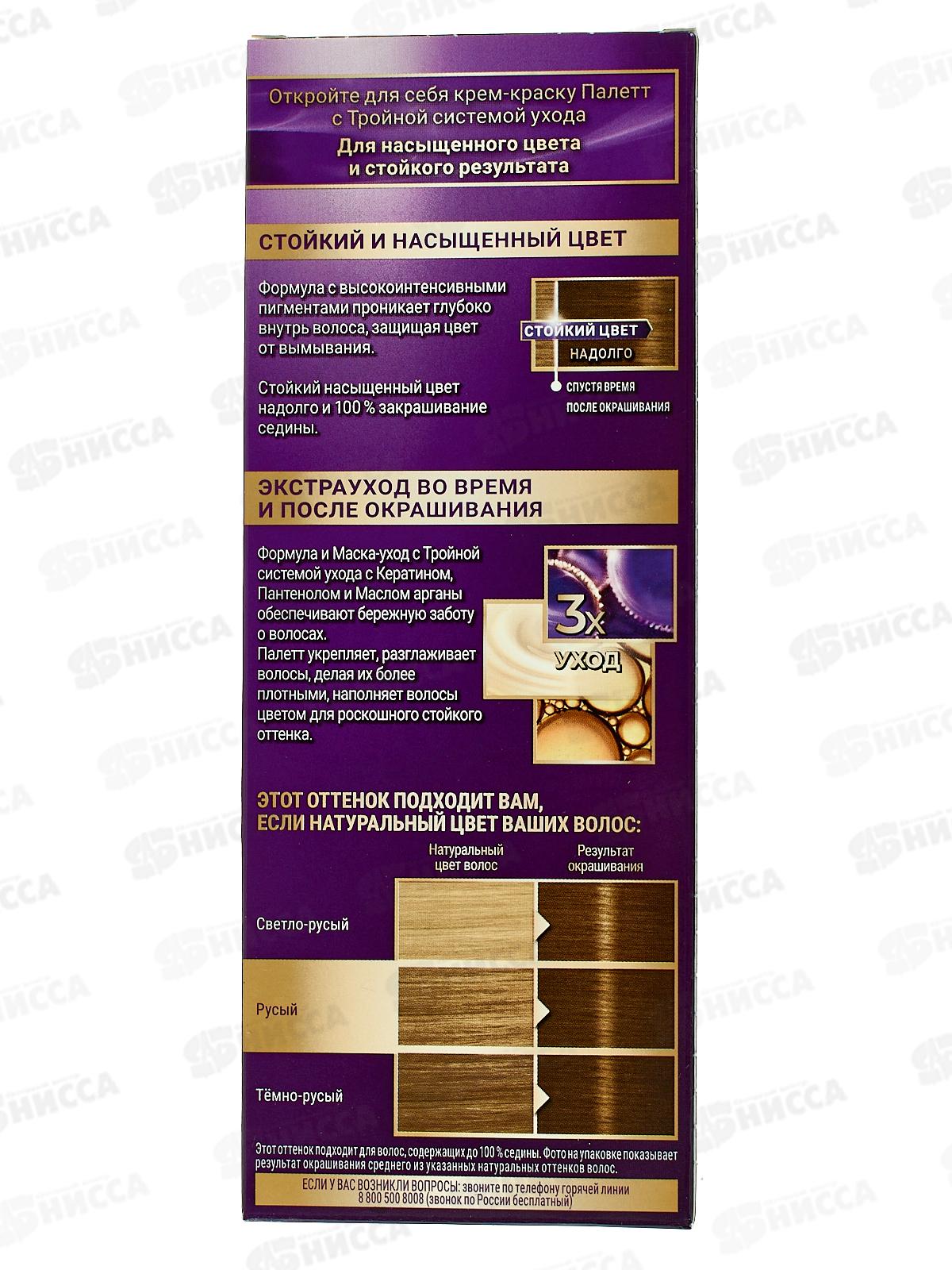 Откройте для себя Стойкую крем-краску Palette с Тройной системой ухода с Кератином, Пантенолом, Nutri-маслом, обеспечивающей бережную заботу о волосах. Формула с высокоинтенсиными пигментами глубоко проникает в структуру волоса, защищая цвет от вымывания. Для стойкого и интенсивного цвета. Ухаживающая краска, обогащенная пленительным цветом Ваших волос, удовлетворяющим все ваши потребности: насыщенный, экстрастойкий оттенок, ухоженные волосы, даже при регулярном окрашивании, живой блеск. Надежное закрашивание седины.