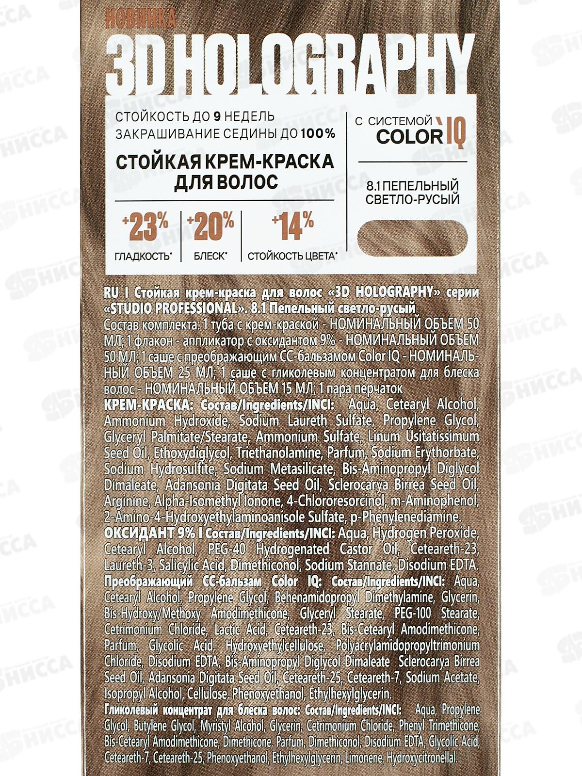 STUDIO 3D голографик к/краска 8,1 Пепельно светло-русый *6