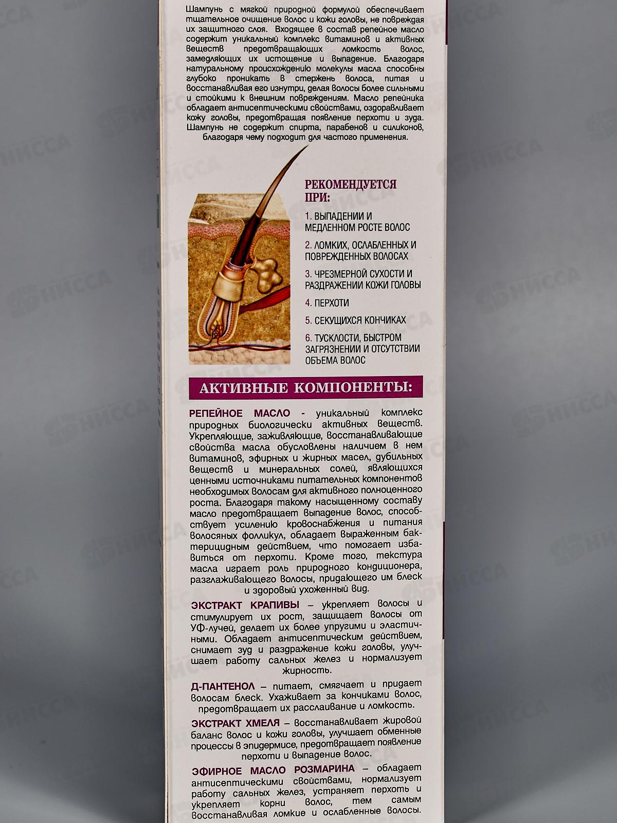 Активные компоненты: репейное масло, экстракт крапивы, Д-пантенол, экстракт хмеля, масло розмари