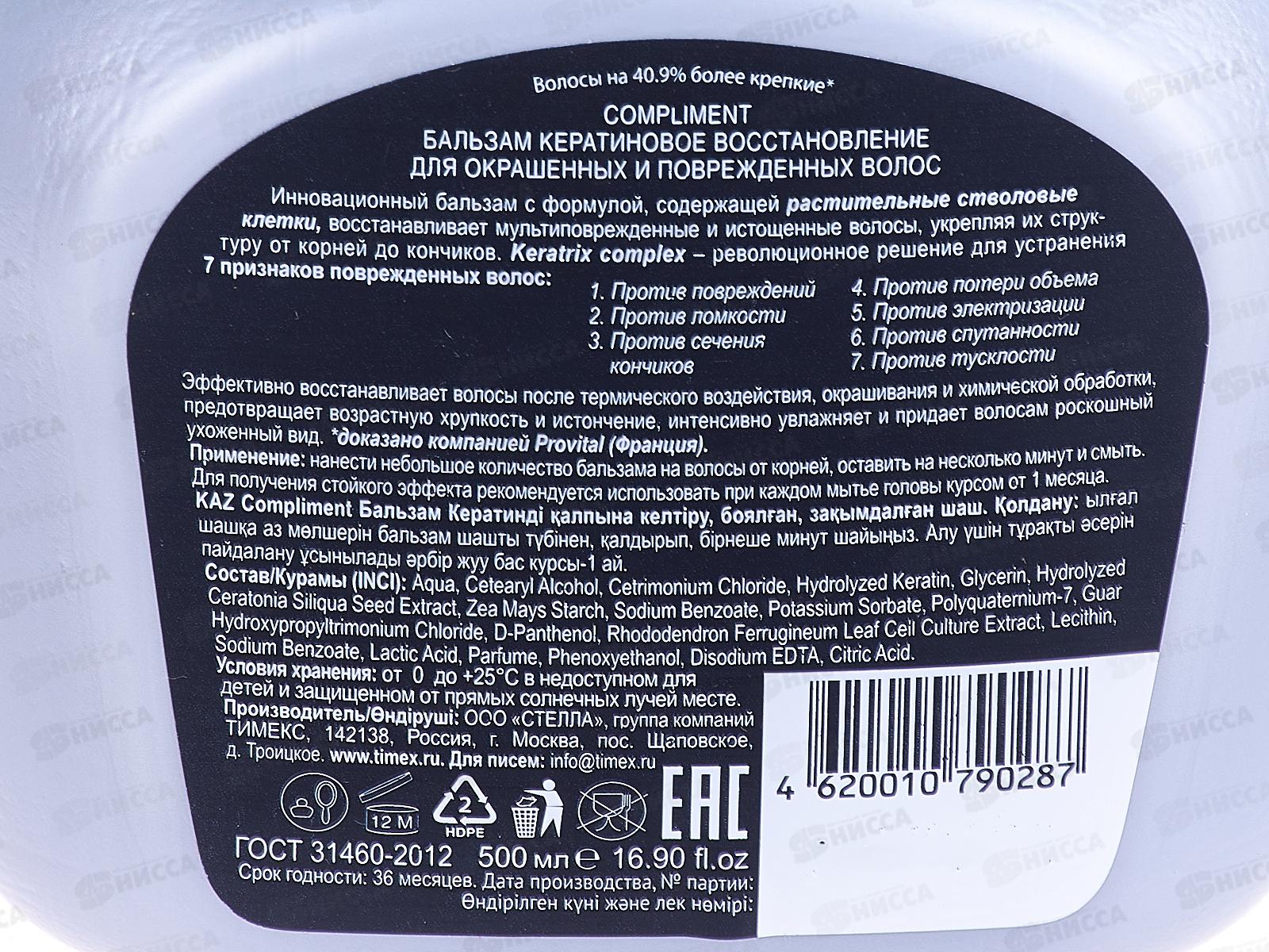 КОМПЛИМЕНТ Кератиновое восстановление бальзам для волос 500мл *12