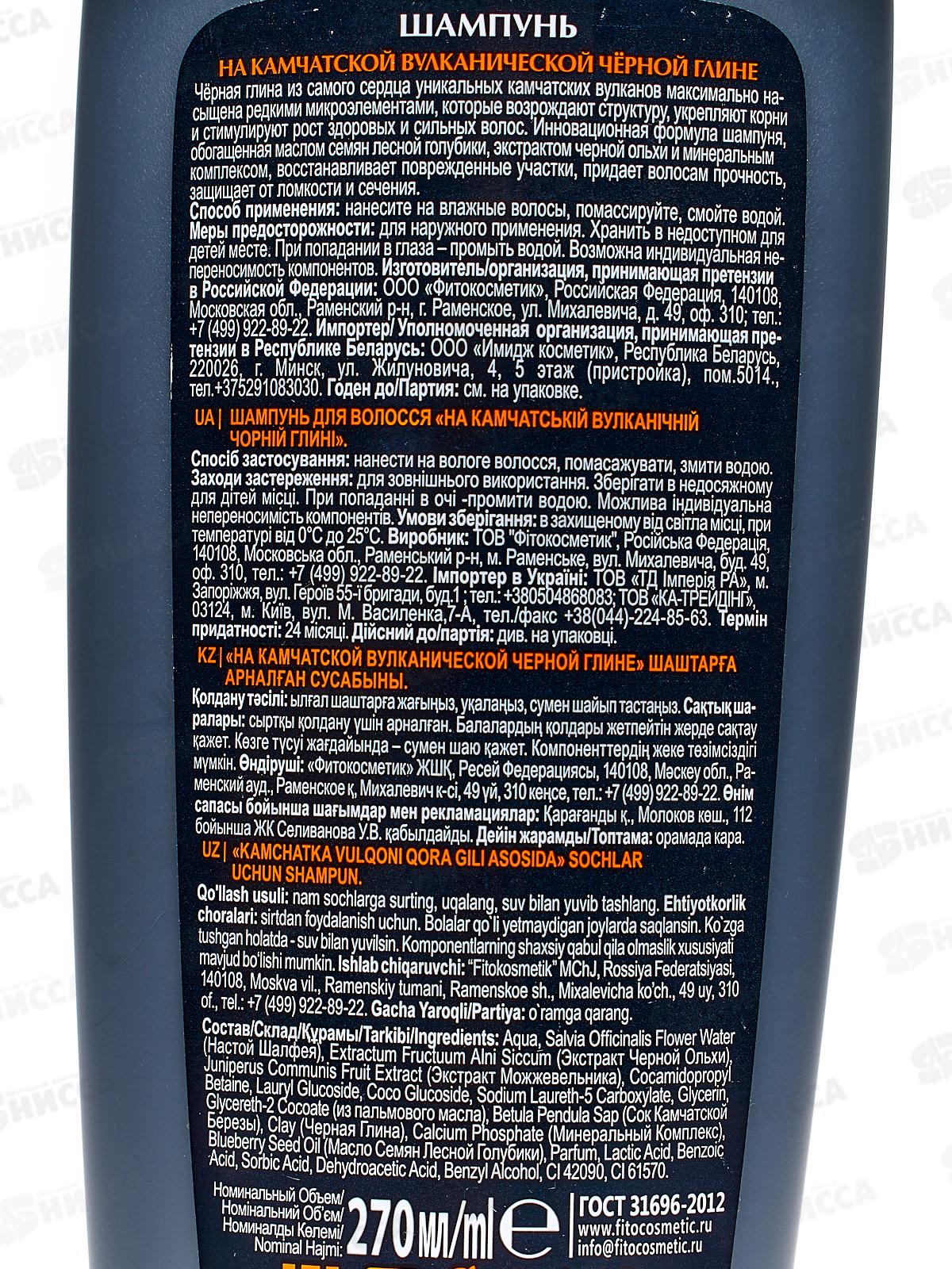 Шампунь для волос Камчатская вулканическая черная глина 270мл РИКЗ *16