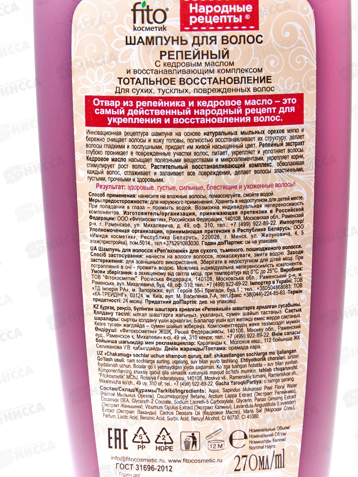Народные Рецепты Шампунь для волос "Репейный" 270мл *16