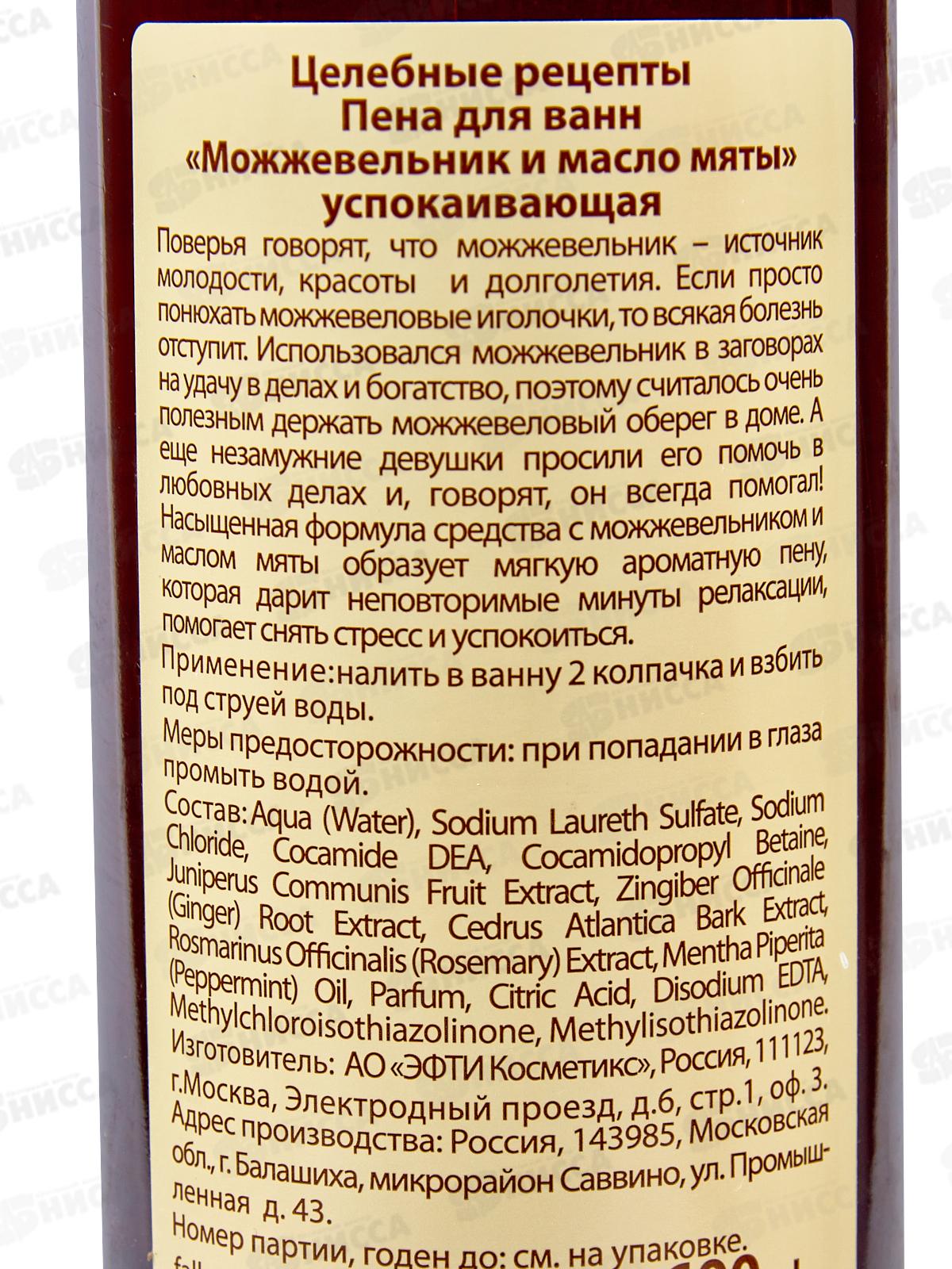 Целебные рецепты пена для ванн Успокаивающая 600мл *12