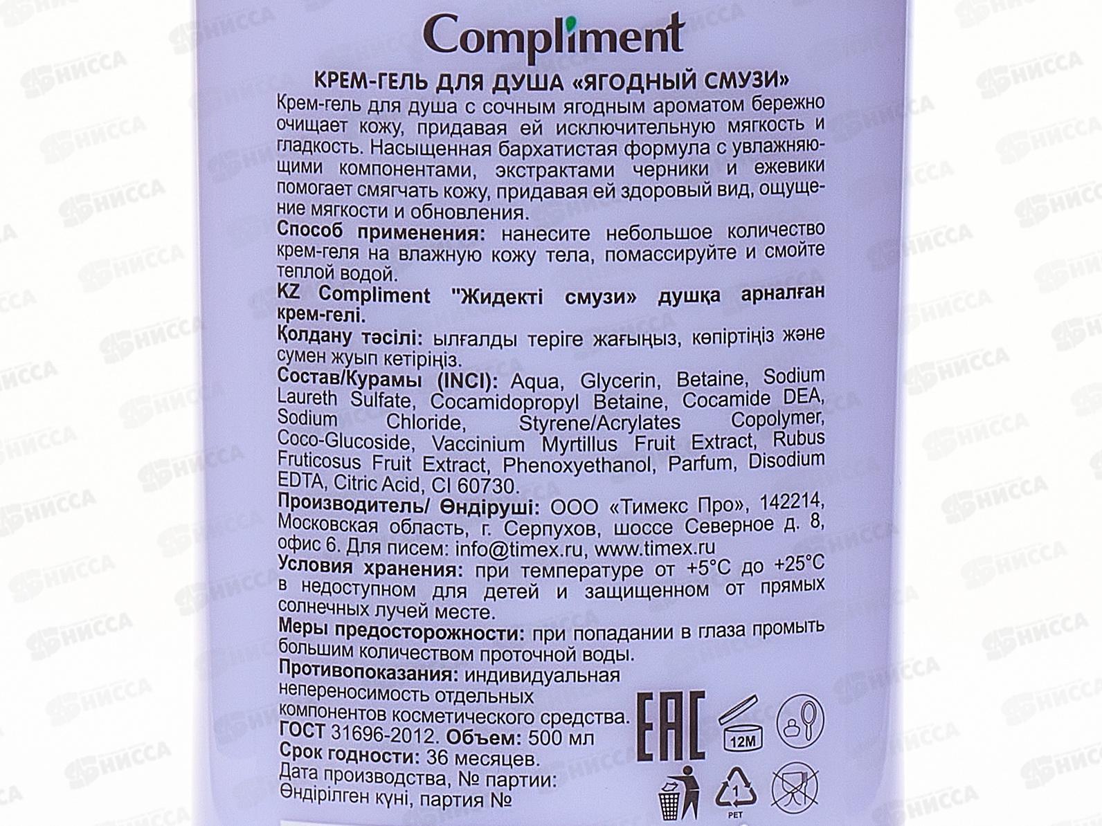 КОМПЛИМЕНТ Крем-гель для душа Ягодный смузи 500мл *12