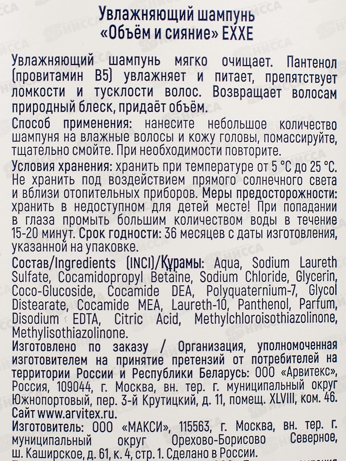 EXXE Шампунь для волос Объем и сияние Vitamin Pro 400мл *12 С0007228