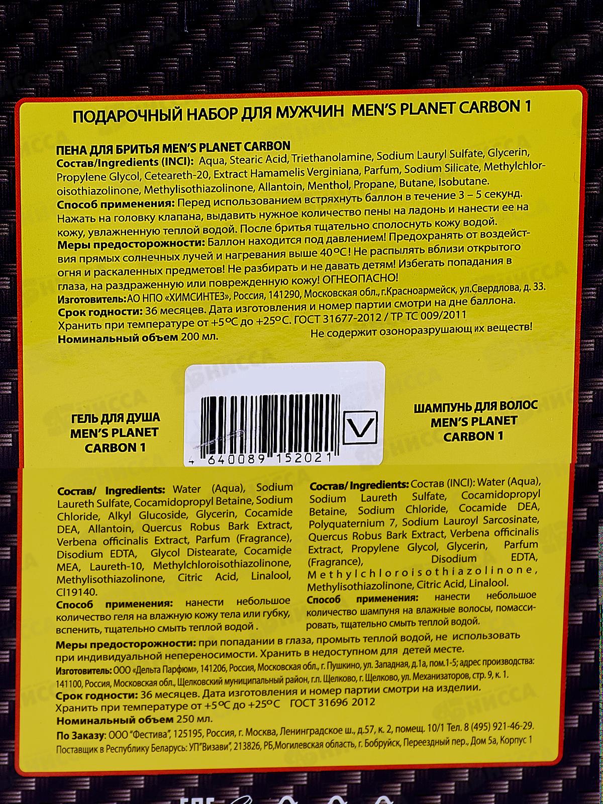 Men"s Planet Carbon1 Подарочный набор (шампунь 250+пена д/б 200) муж *7 552
