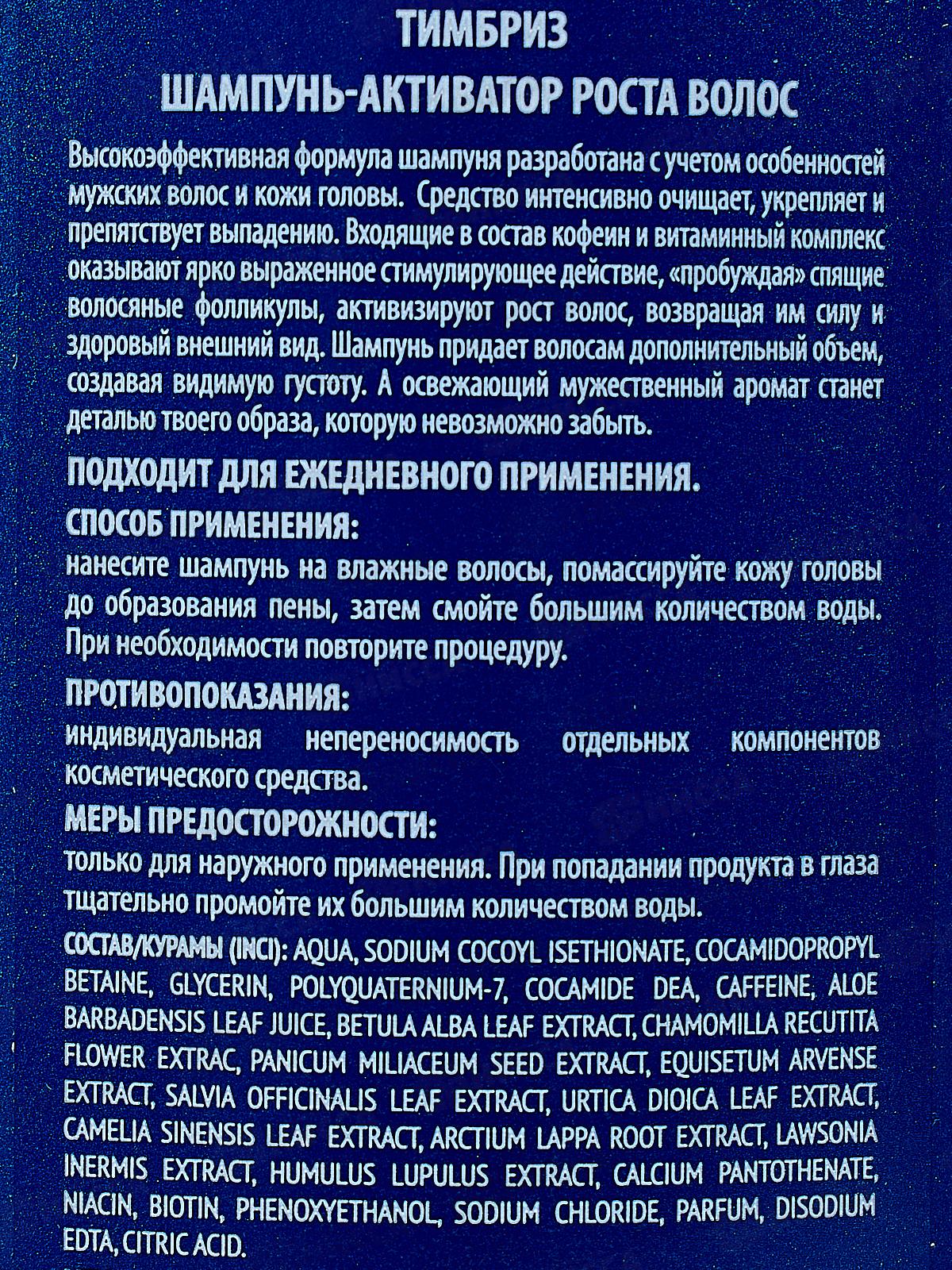 Состав: вода, кокоилизетионат натрия, кокамидопропилбетаин, глицерин, кокамид ДЭА, кокоглюкозид, сополимер стирола и акрилатов, глицерилолеат, цинк PCA, феноксиэтанол, пироктон оламин, гидроксипропилгуар, гидроксипропилтримонийхлорид, хлорид натрия, ментол, отдушка, лимонная кислота.