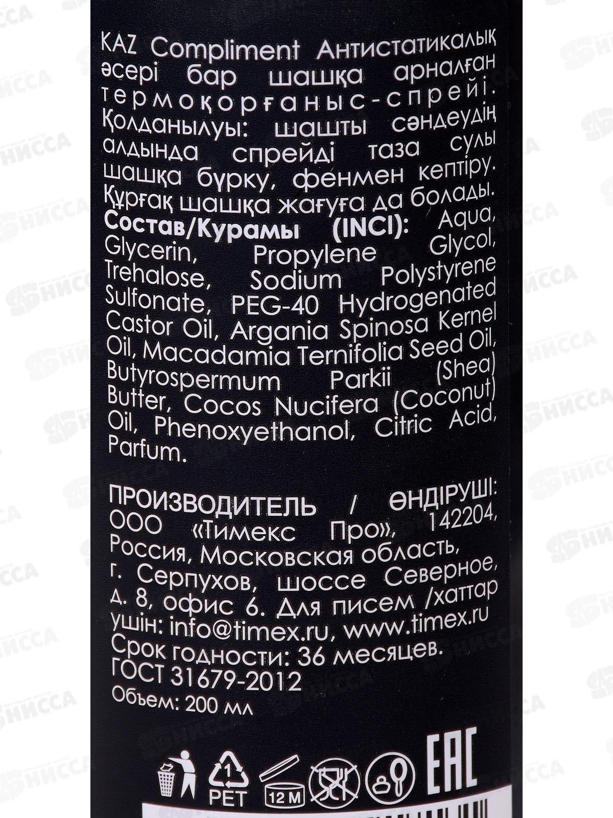 КОМПЛИМЕНТ Спрей-термозащита для волос с антистатиком Питание и укрепление 200мл *12