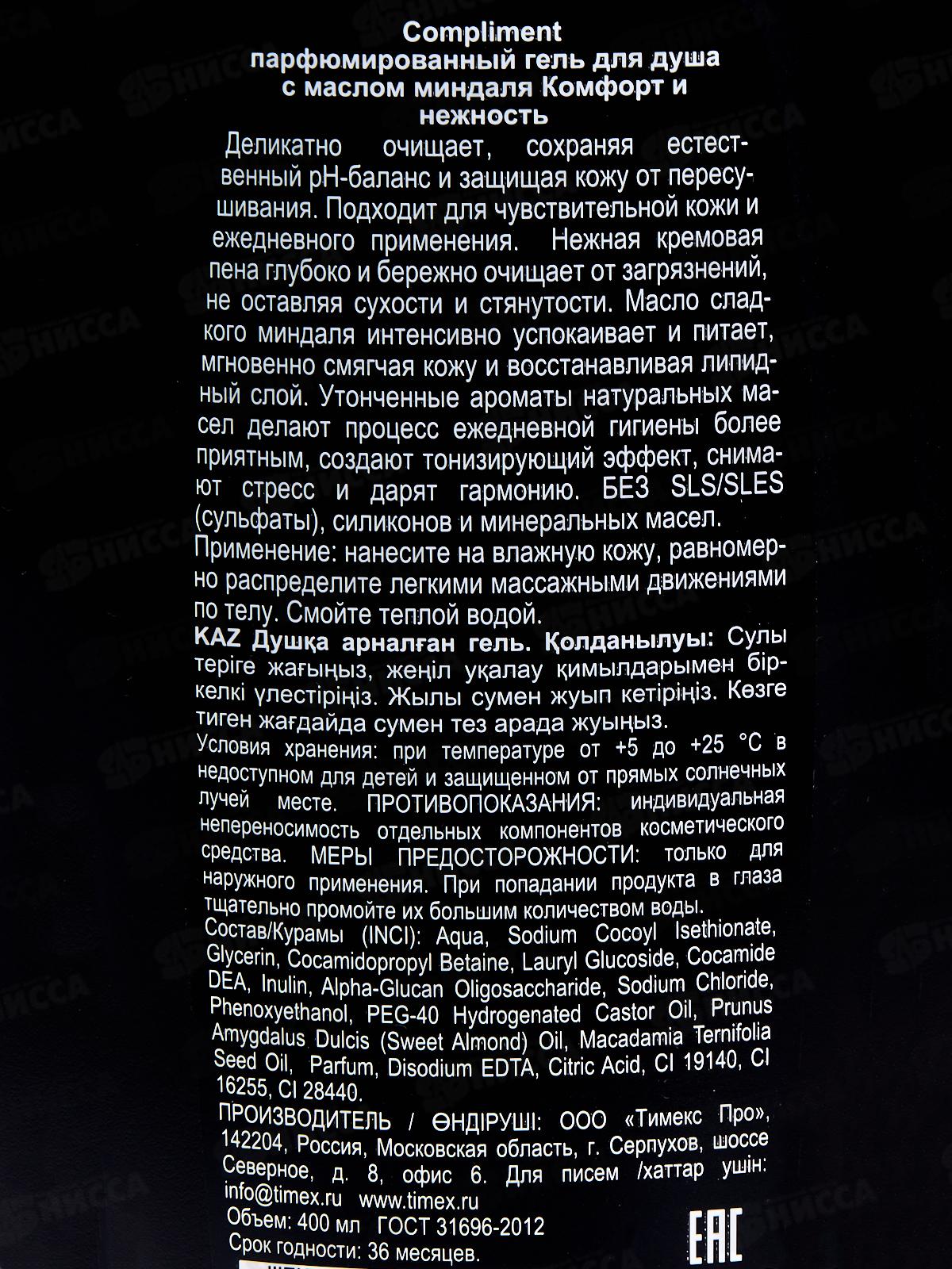 Compliment парфюмированный гель для душа с маслом миндаля Комфорт и нежн 400мл *9