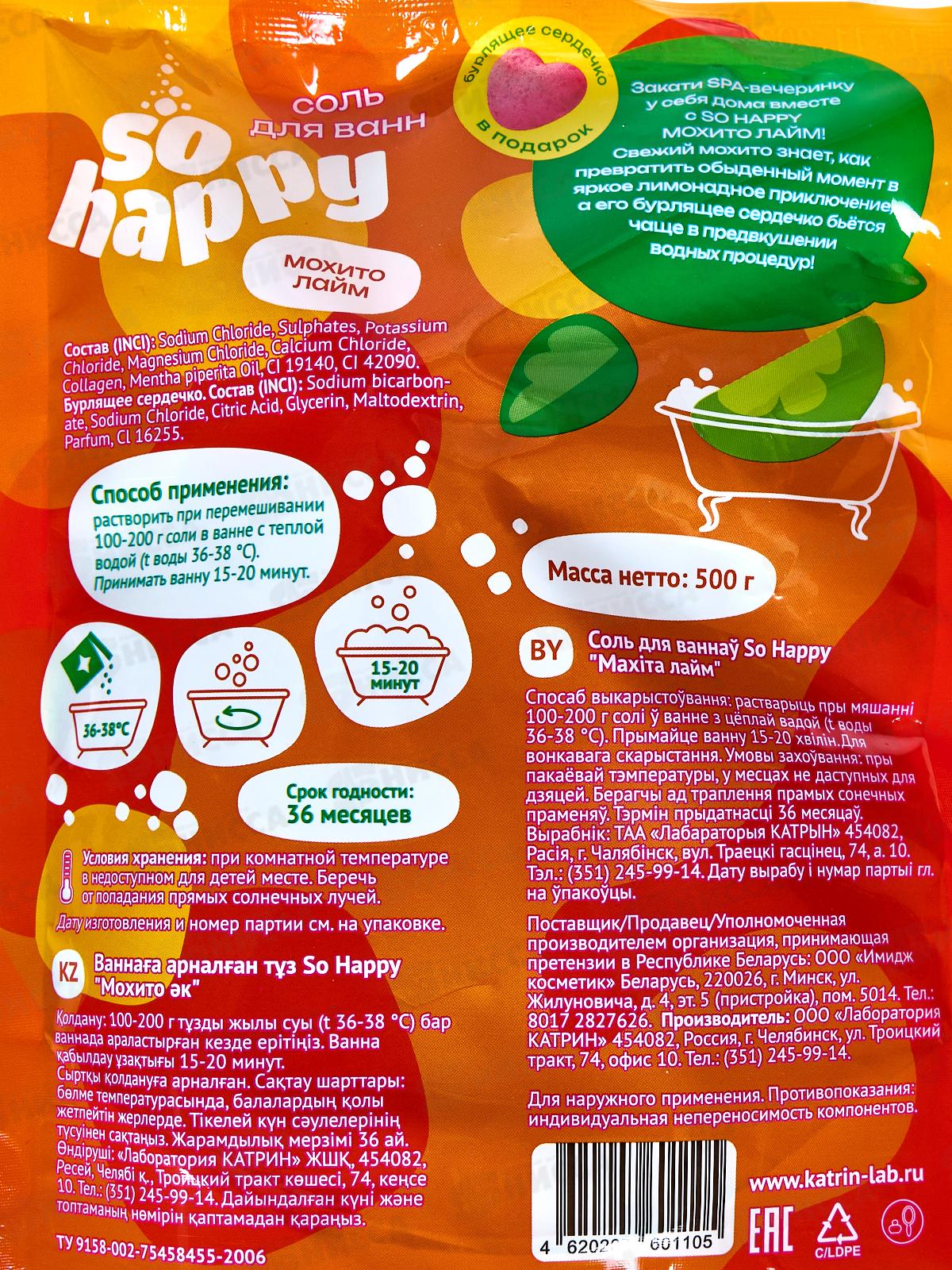 Состав соли: хлорид натрия, сульфаты, хлорид калия, хлорид магния, хлорид кальция, коллаген, масло мяты перечной, CI 19140, CI 42090. Состав бомбочки: бикарбонат натрия, хлорид натрия, лимонная кислота, глицерин, мальтодекстрин, отдушка, CL 16255.