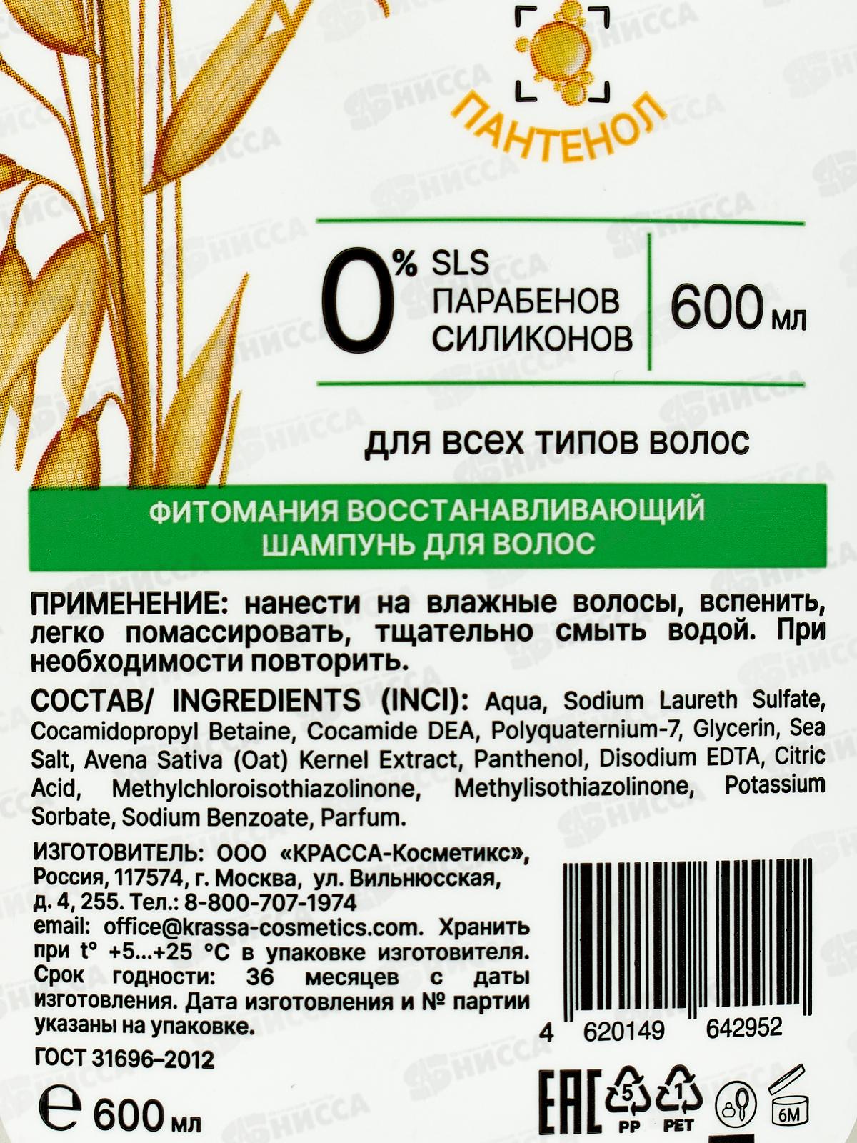 Фитомания шампунь для волос Восстанавливающий ФТМ42952 *9