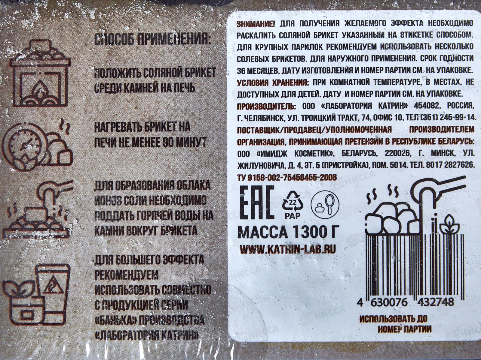 Соляной брикет для бани 1300г Банька Противопростудный *7