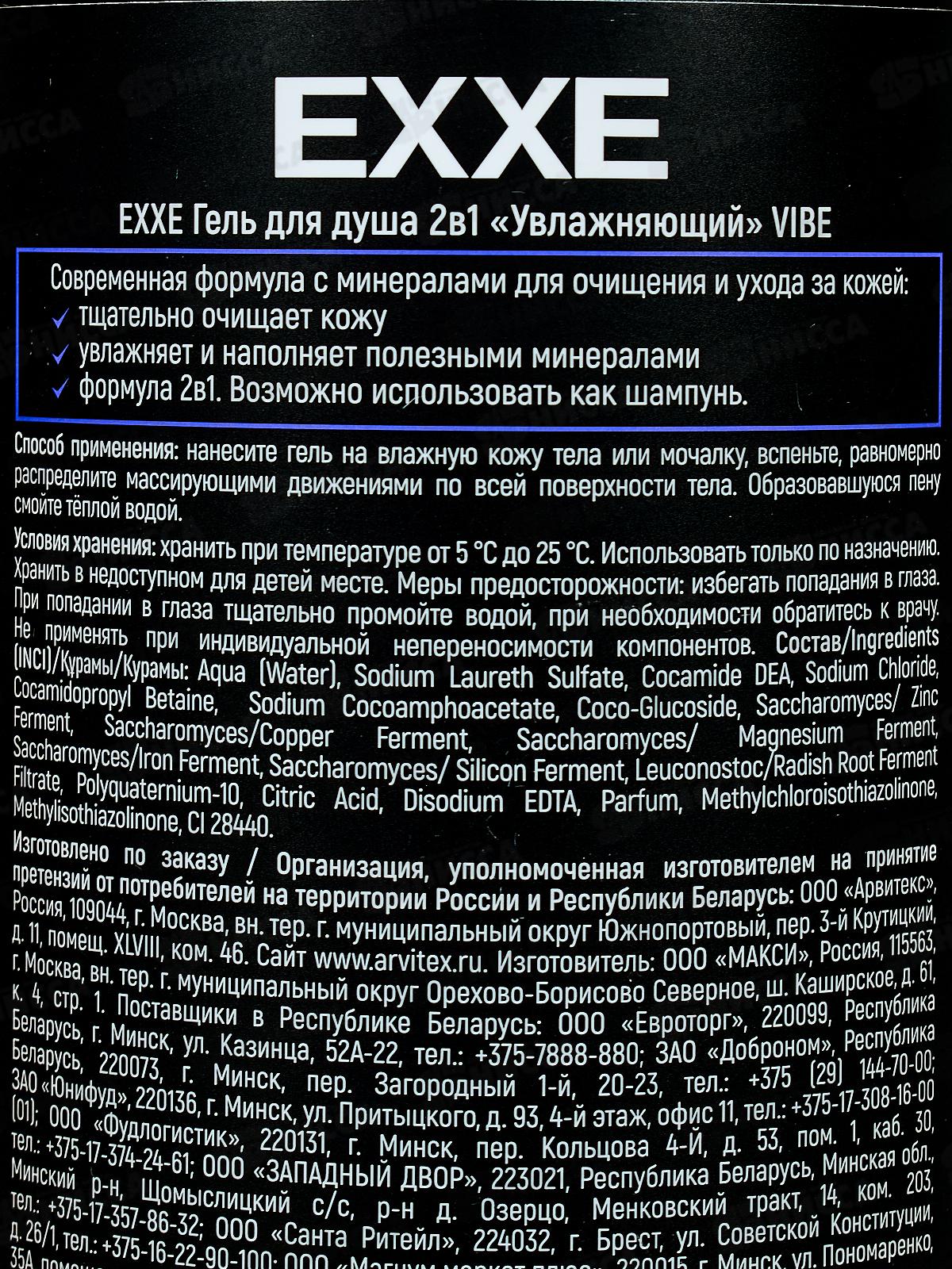 EXXE MEN Гель для душа Увлажняющий 2в1 VIBE 1000мл С0008275 *4
