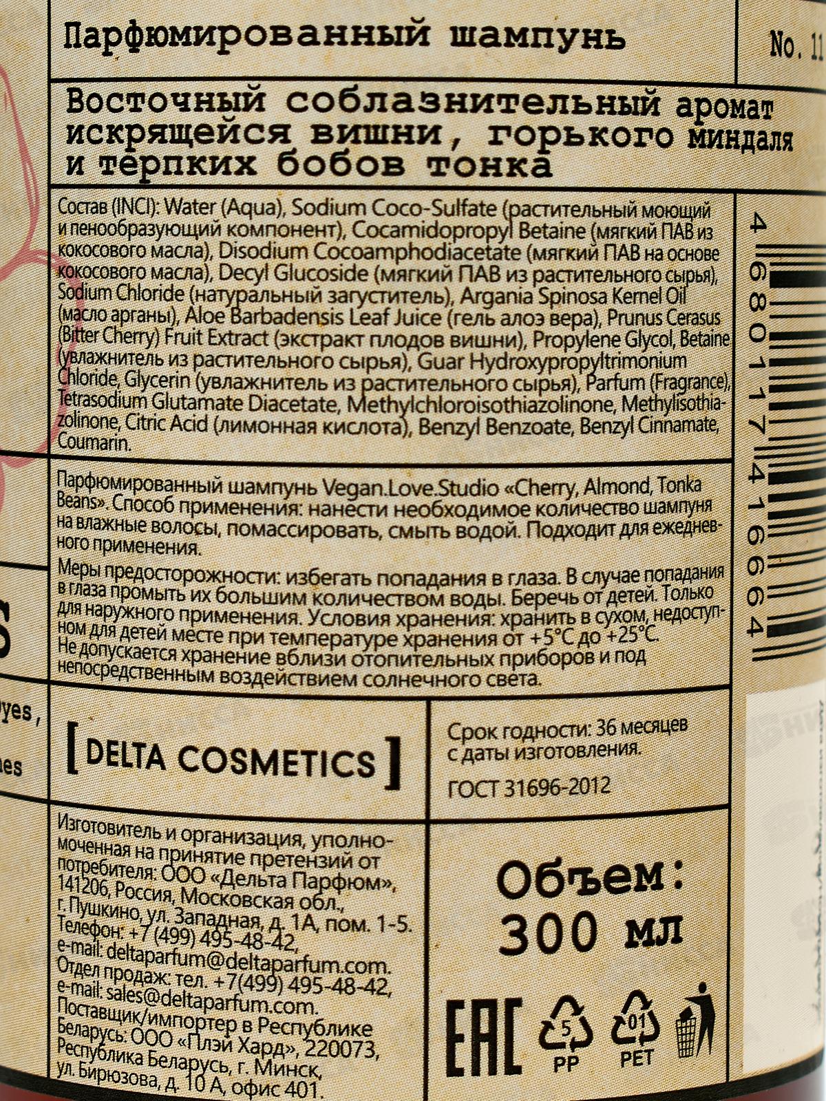 Vegan L.S. Cherry Шампунь для волос Almond Tonika Beans 300мл *18