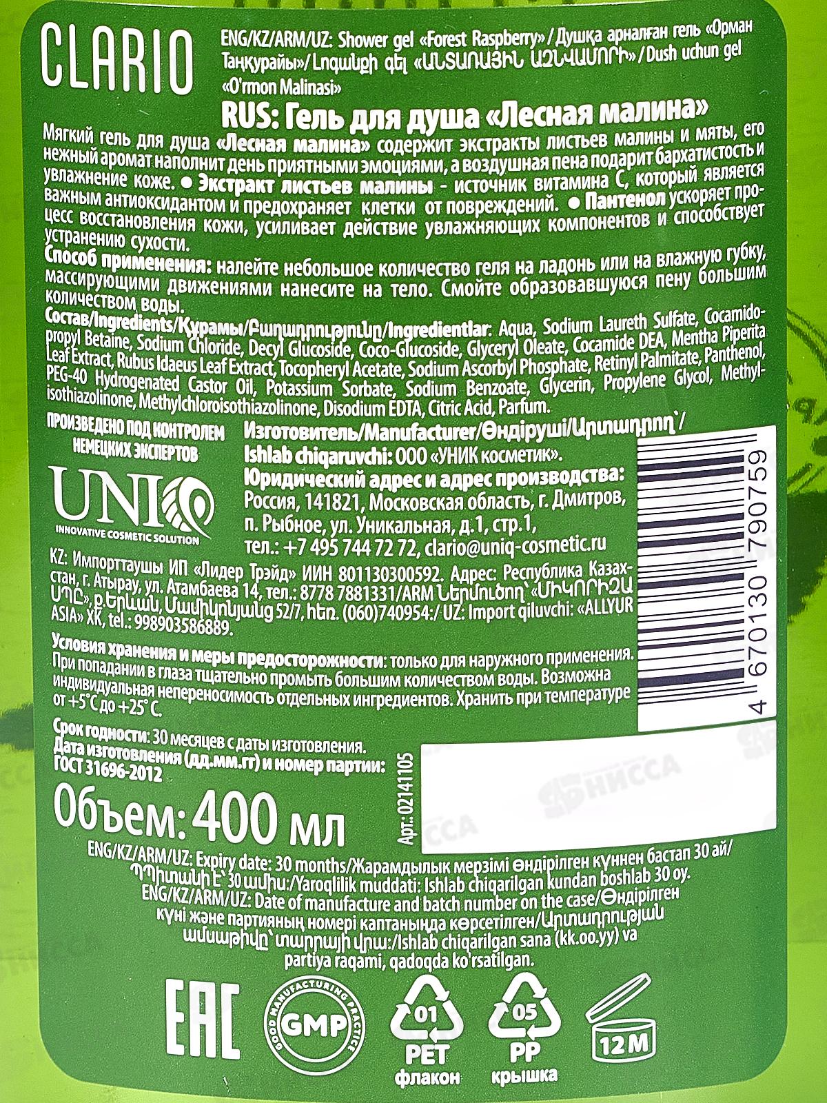 Clario Гель для душа Лесная малина 400мл *5