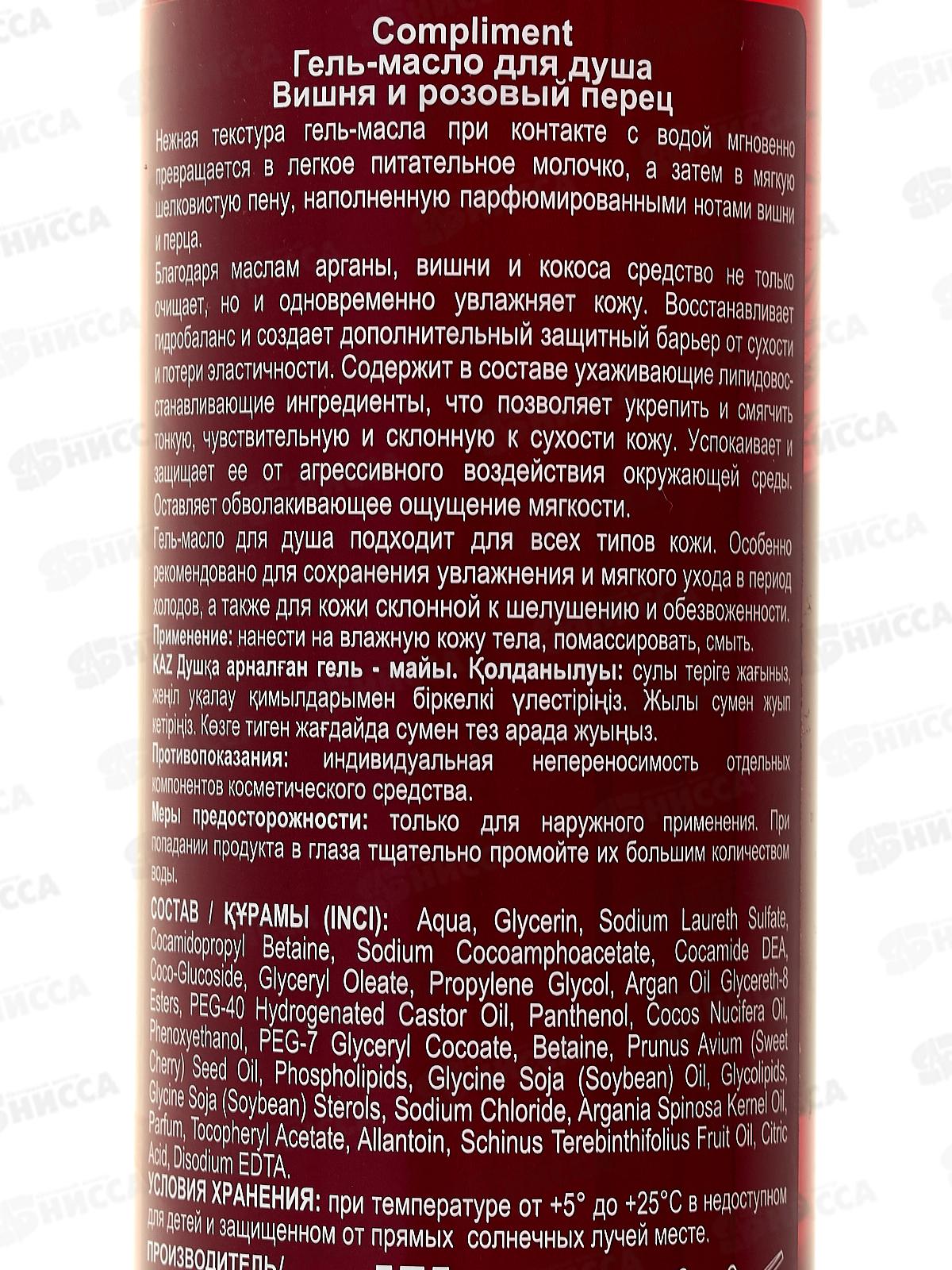КОМПЛИМЕНТ Гель-масло для душа Вишня и розовый перец 250мл *12