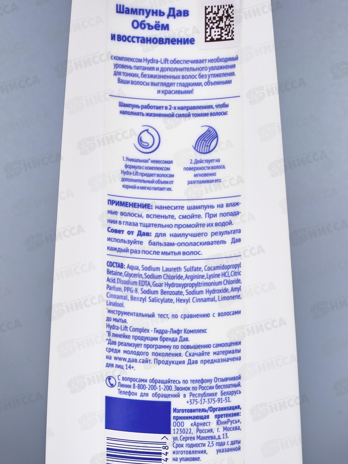 ДАВ шампунь 380мл RT Объем и Восстановление *10