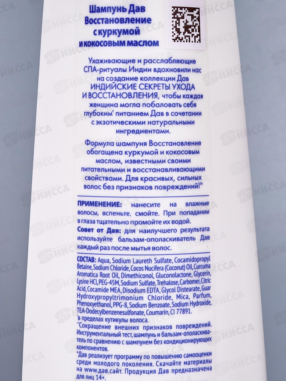 ДАВ шампунь 380мл RT Восстановление с куркумой и кокосовым маслом *10
