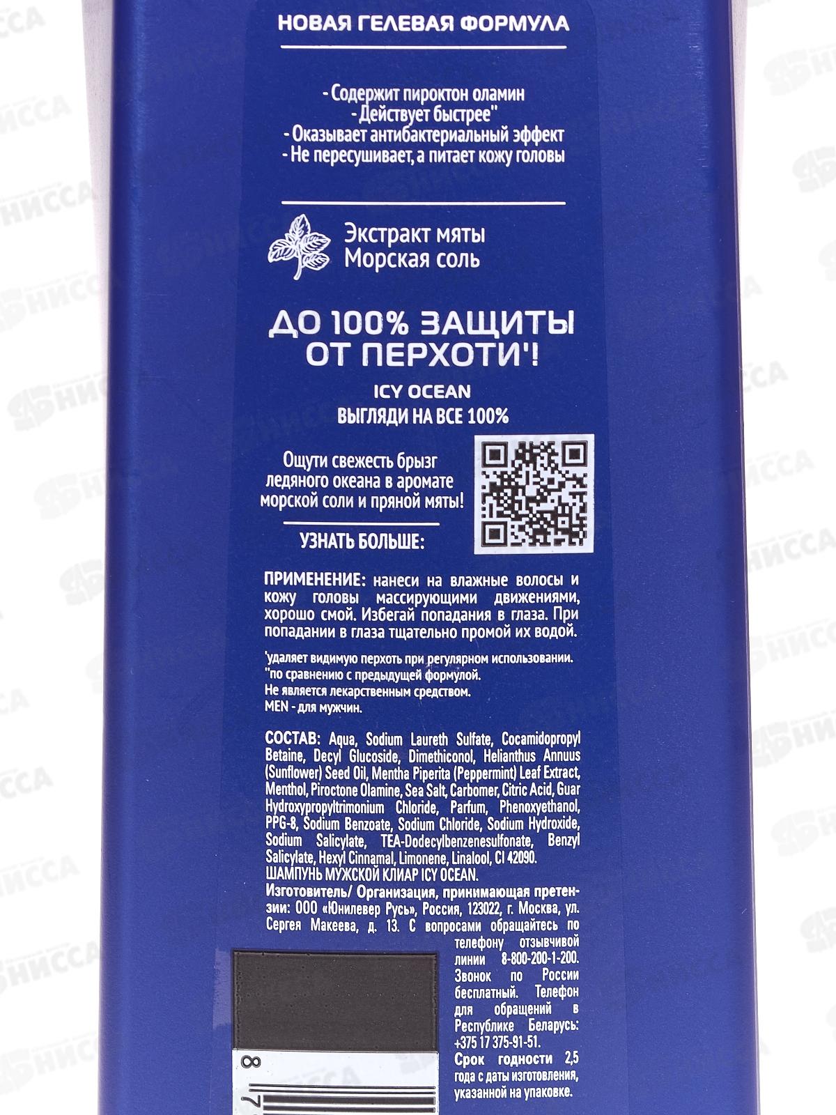 CLEAR шампунь 380мл Icy Ocean для мужчин *12