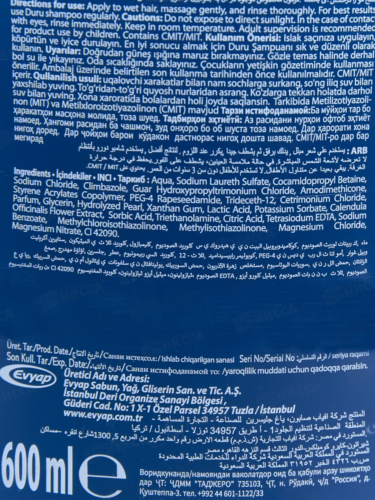 Состав: вода, лауретсульфат натрия, кокамидопропилбетаин, хлорид натрия, климбазол, сополимер стирола/акрилатов, ПЭГ-4 амид рапса, парфюмерная композиция, триэтаноламин, гуар гидроксипропилтримония хлорид, амодиметикон, тридецет-12, цетримония хлорид, бензоат натрия, лимонная кислота, тетранатрий ЭДТА, глицерин, гидролизованный жемчуг, ксантановая камедь, молочная кислота, сорбат калия, экстракт цветков календулы лекарственной, пропиленгликоль, метилхлоризотиазолинон, хлорид магния, нитрат магния, CI 42090.