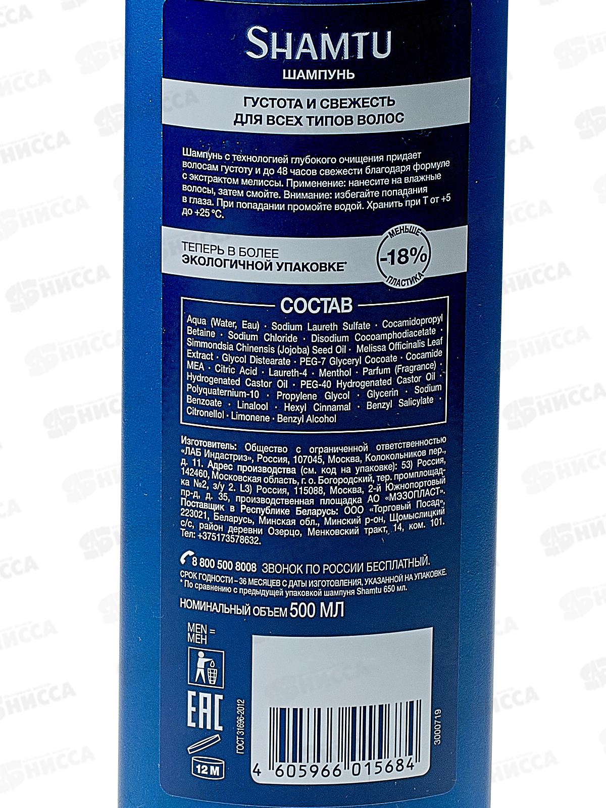 ШАМТУ шампунь 500мл Густота и свежесть с экстрактом мелиссы для мужчин *12