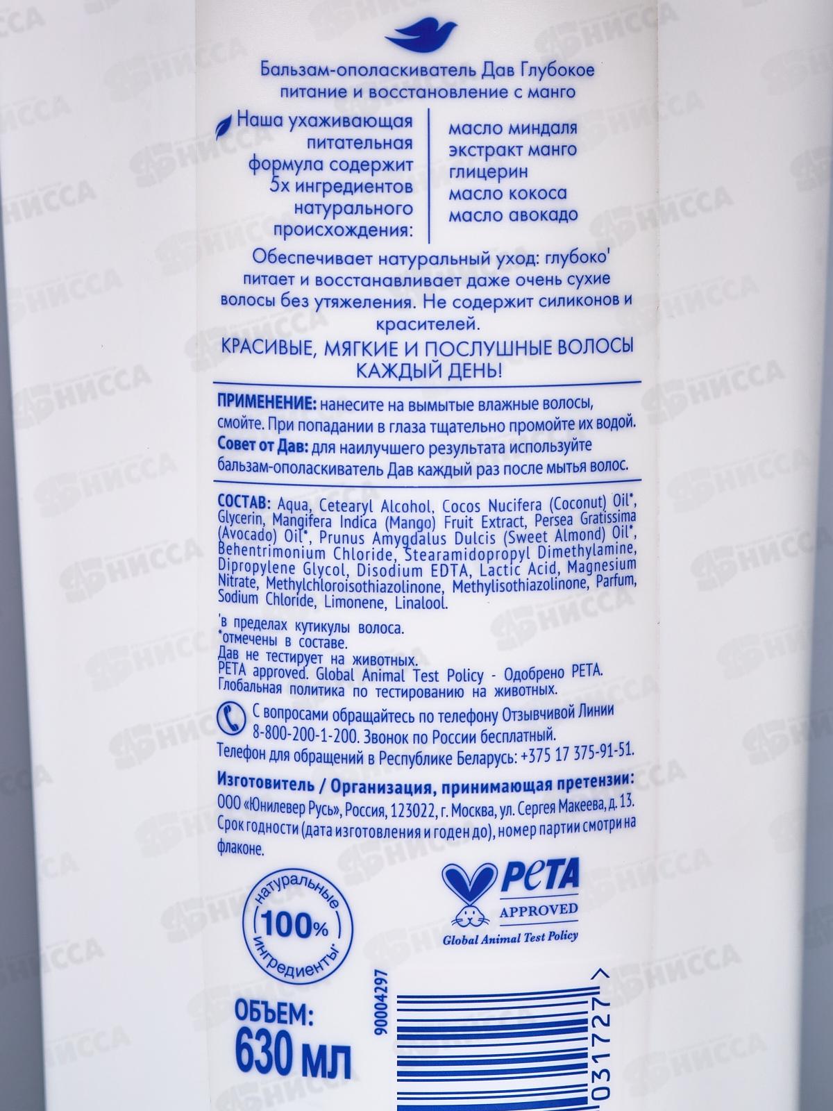 ДАВ бальзам ополаскиватель Глубокое питание и восстановление с Манго 680мл *8