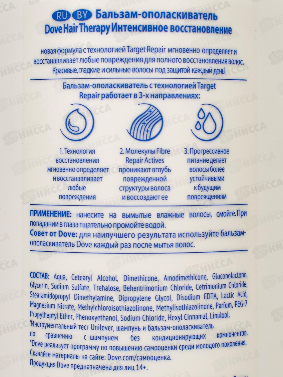 Состав: вода, цетеариловый спирт, диметиконол, глюконолактон, глицерин, сульфат натрия, трегалоза, хлорид бегентримония, стеарамидопропилдиметиламин, дипропиленгликоль, динатриевая соль ЭДТА, молочная кислота, нитрат магния, метилхлоризотиазолинон, метилизотиазолинон, парфюмерная композиция, феноксиэтанол, хлорид натрия, TEA-додецилбензолсульфонат, гексилциннамаль, линалоол.