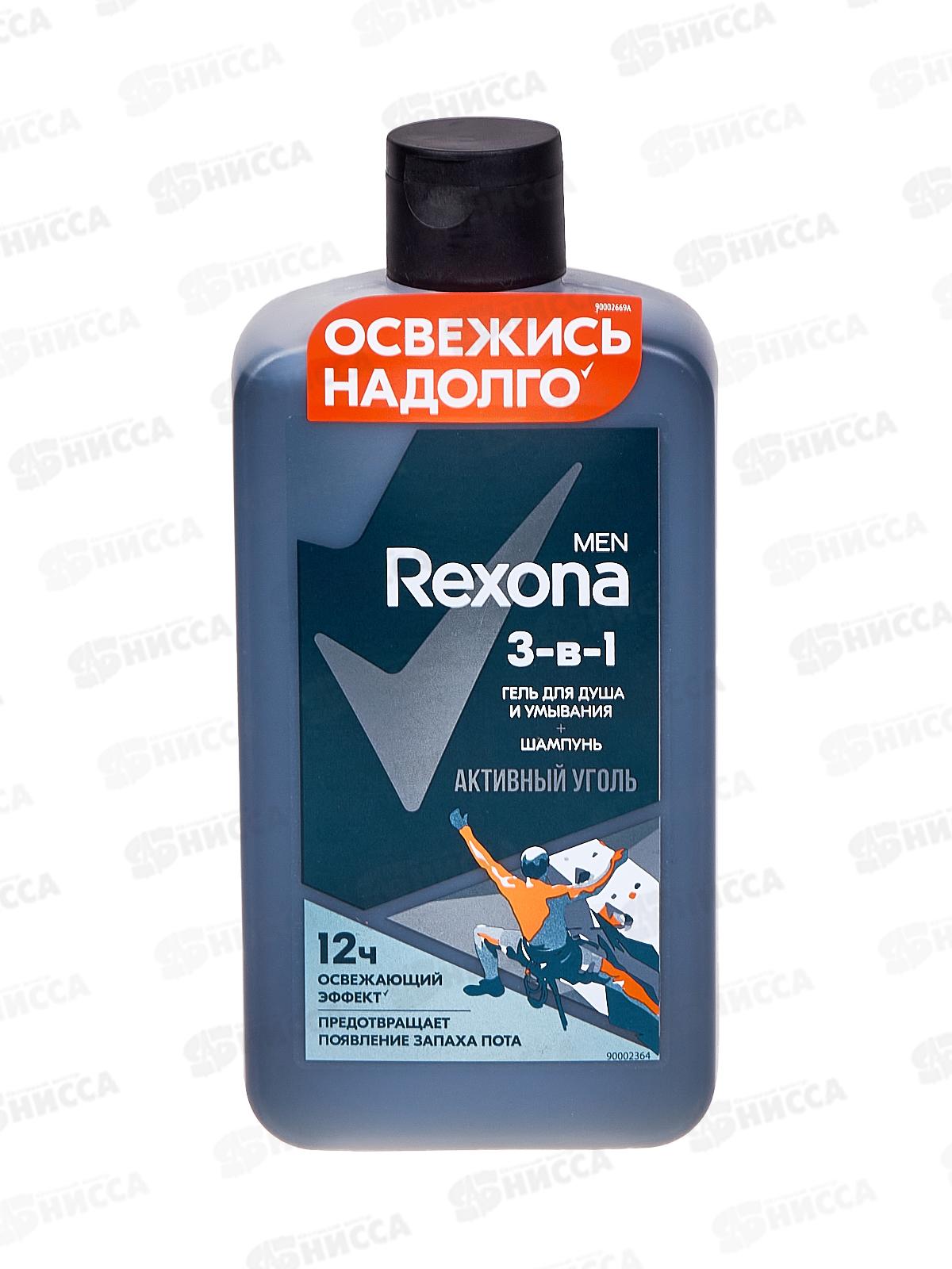 Рексона гель для душа men 490мл 3в1 Активный уголь *6