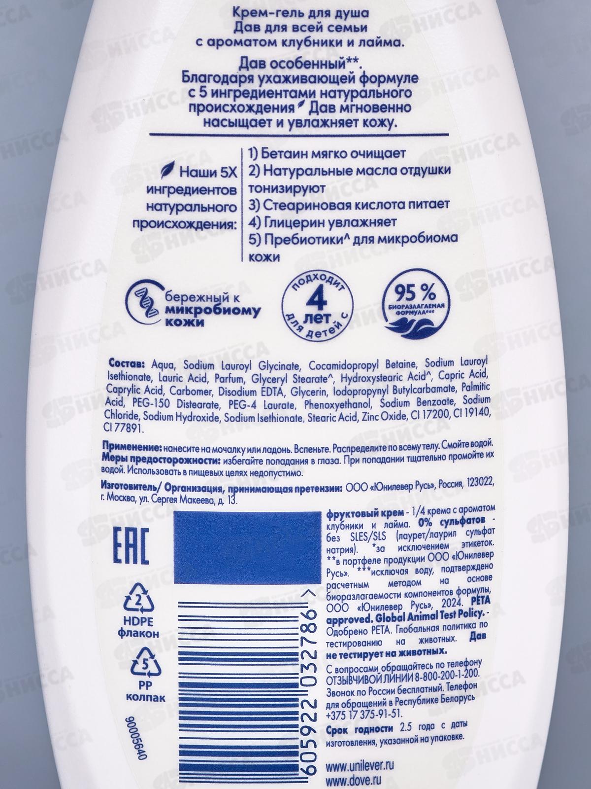 ДАВ крем-гель для душа 250мл Клубника Лайм *12