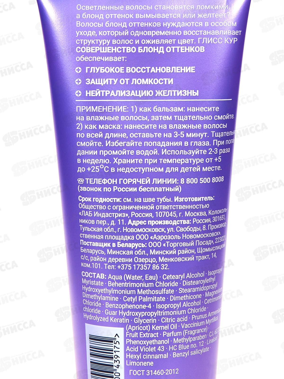 ГЛИСС КУР Маска 200мл Фиолетовая Совершенство блонд оттенков *6