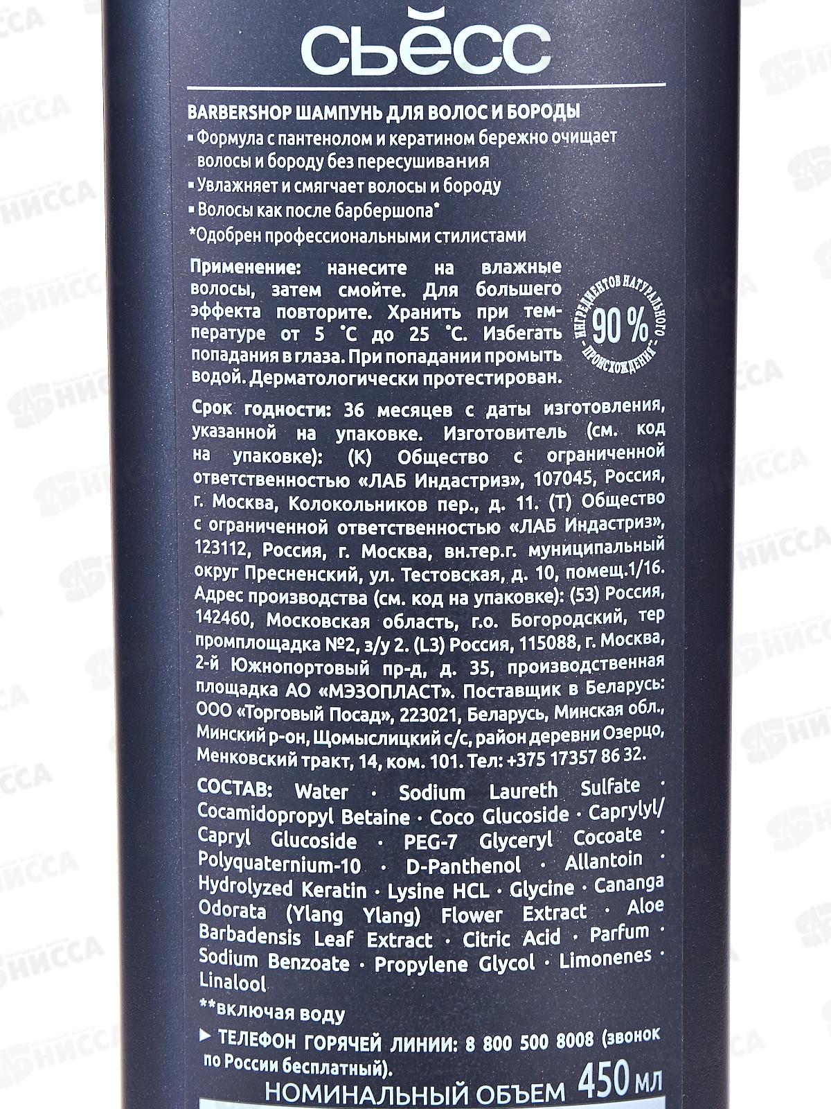 Сьёсс MEN шампунь BARBERSHOP 450мл *12