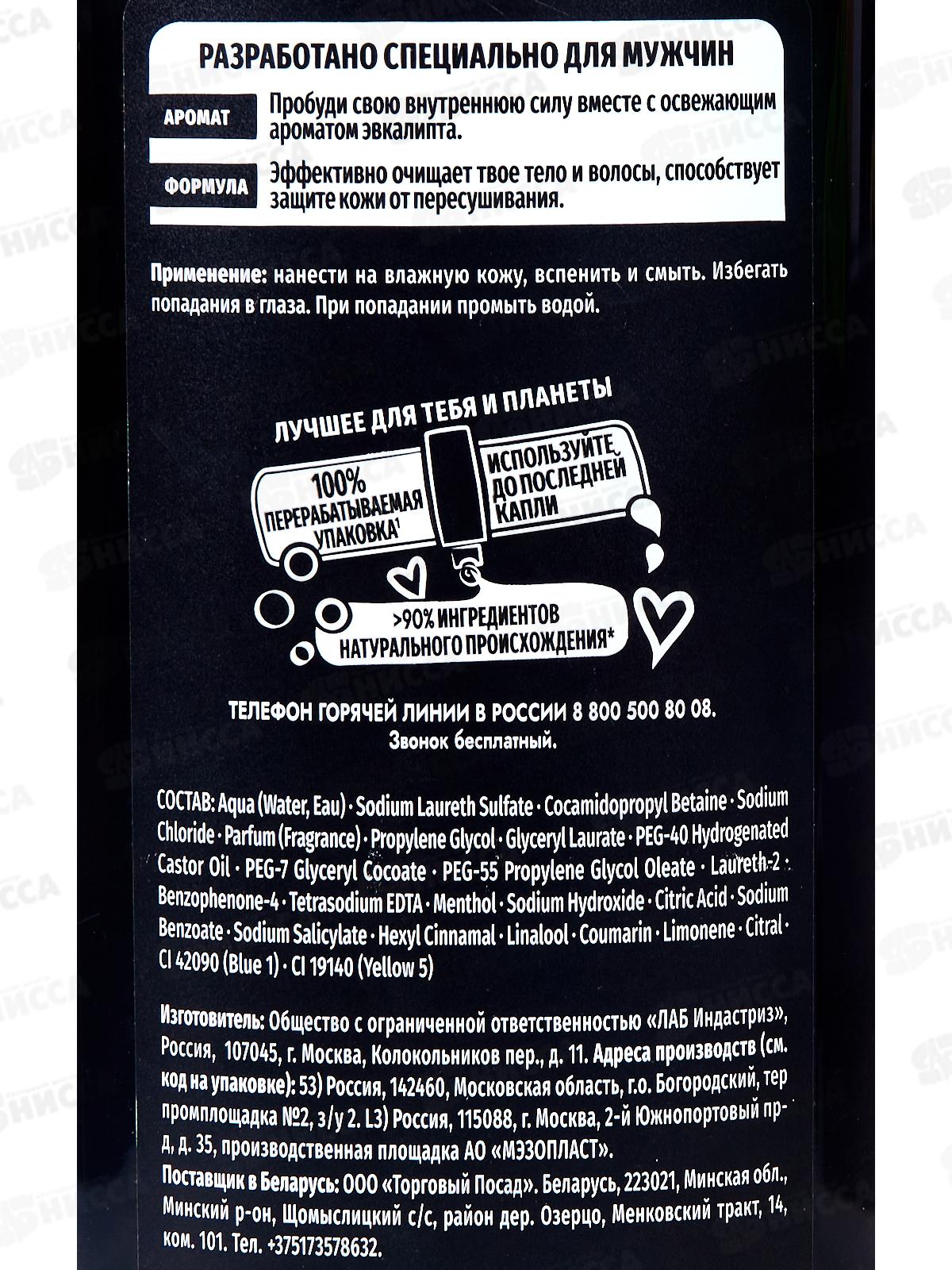 Состав: вода, лауретсульфат натрия, кокамидопропилбетаин, хлорид натрия, парфюмерная композиция (ароматизатор), пропиленгликоль, глицериллаурат, ПЭГ-40 гидрогенизированное касторовое масло, ПЭГ-7 глицерил кокоат, ПЭГ-55 пропиленгликоль олеат, лаурет-2, бензофенон-4, тетранатрий ЭДТА, ментол, гидроксид натрия, лимонная кислота, бензоат натрия, салицилат натрия, гексилциннамаль, линалоол, кумарин, лимонен, цитраль, CI 42090 (синий 1), CI 19140 (желтый 5).