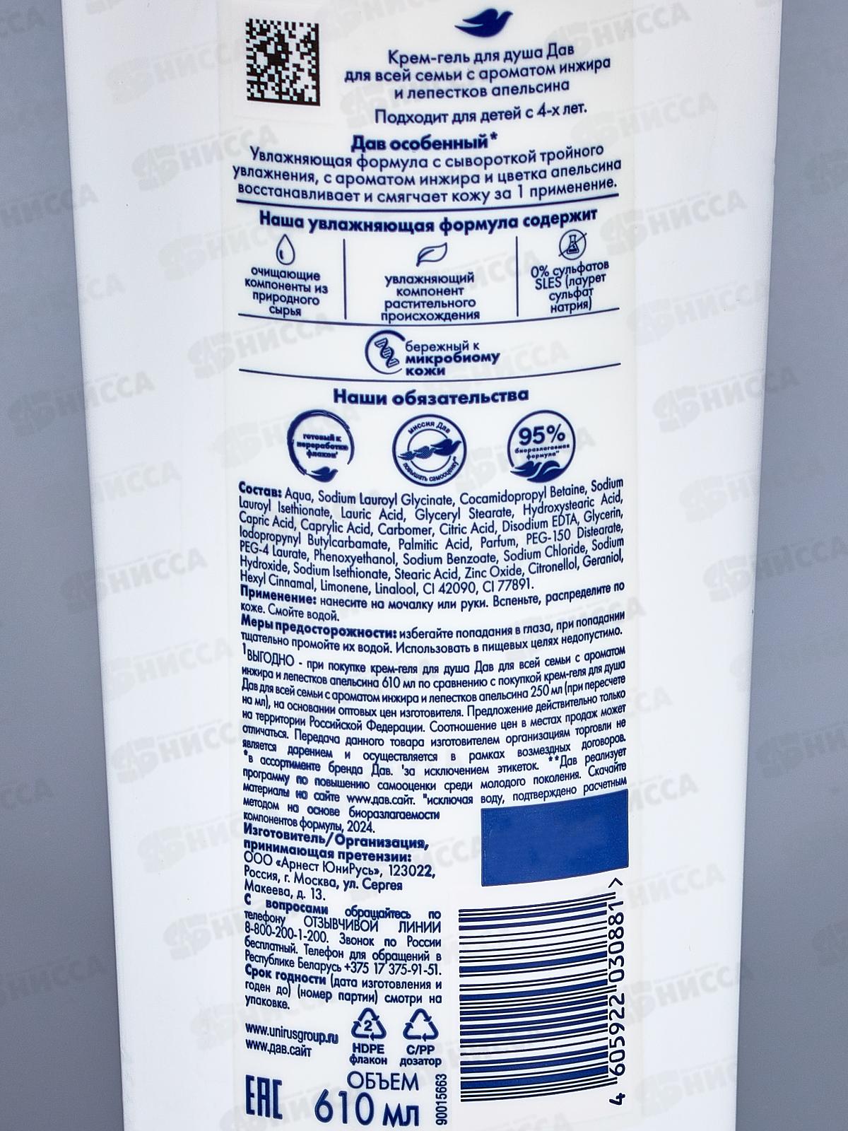 ДАВ Крем-гель для душа 610мл Инжир и лепестки апельсина *8