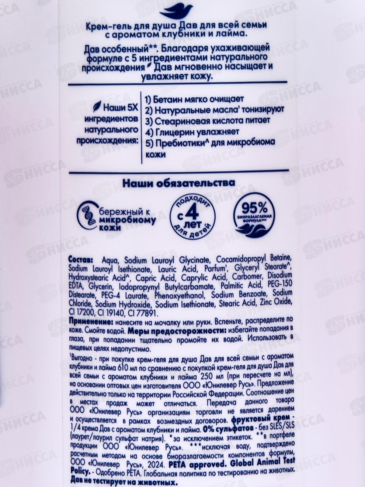 ДАВ Крем-гель д/д 610мл Клубника и Лайм *8