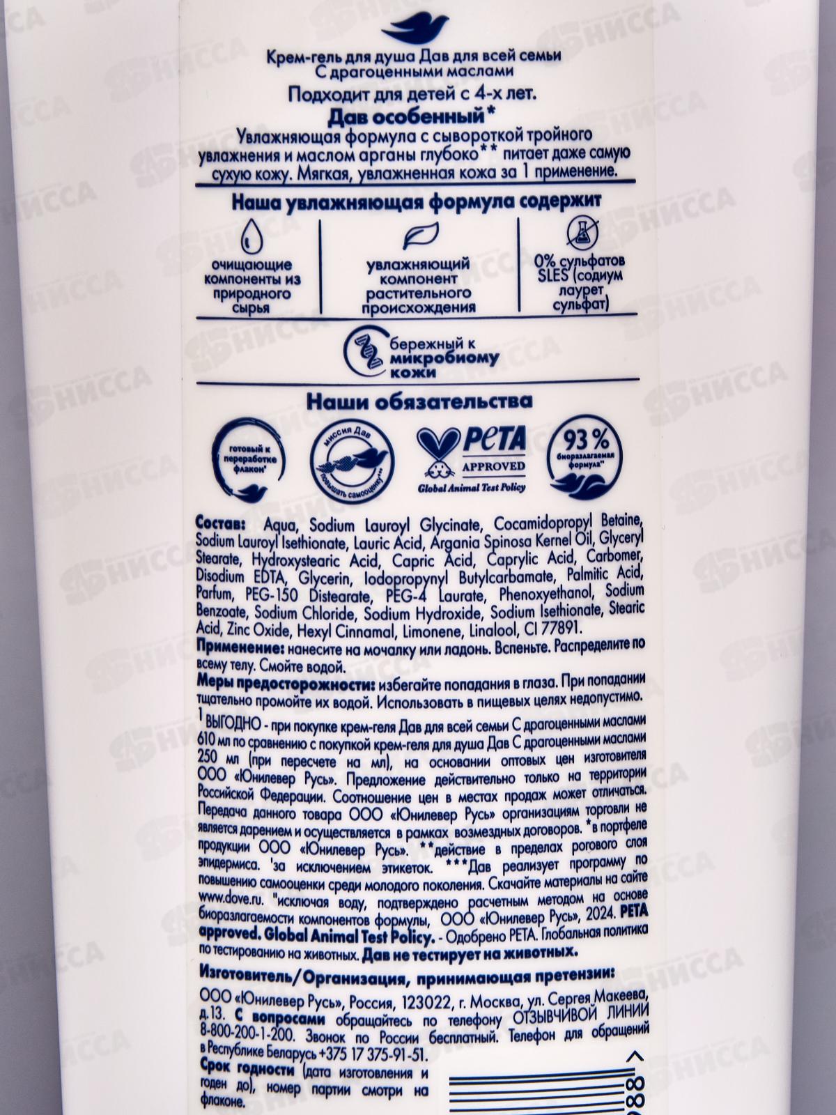 ДАВ Крем-гель д/д 610мл Нежность шелка с маслом арганы *8