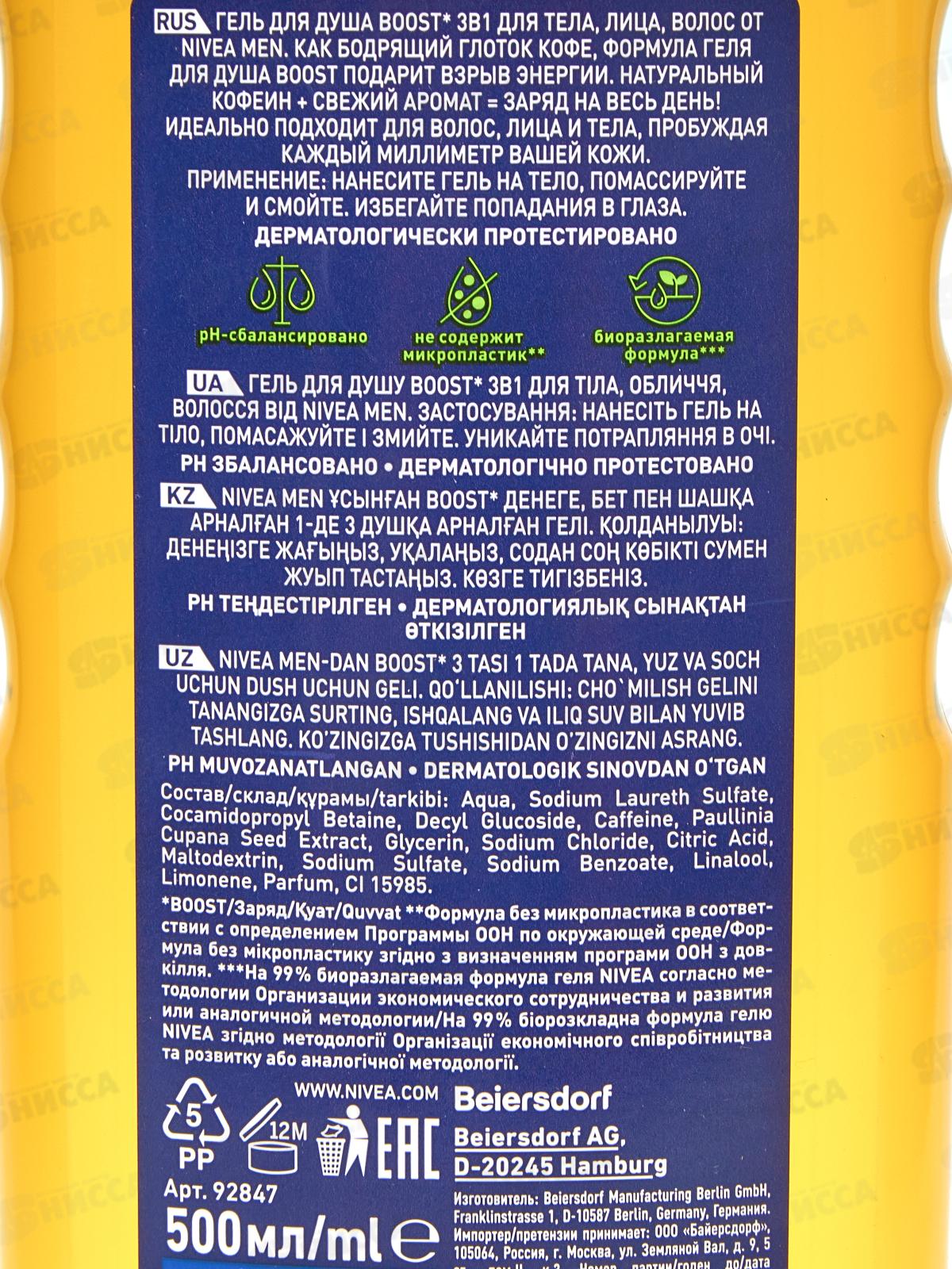 НИВЕЯ душ-гель 500мл Boost муж 92847 *12