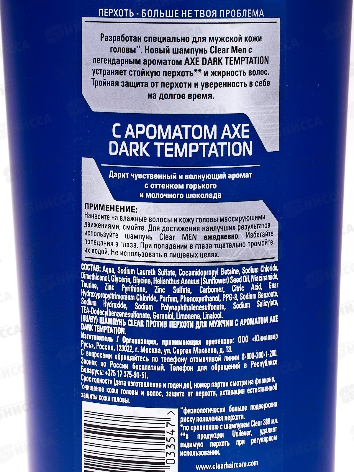 CLEAR шамп. 610мл С ароматом AXE Дарк темпейшн муж *12/6