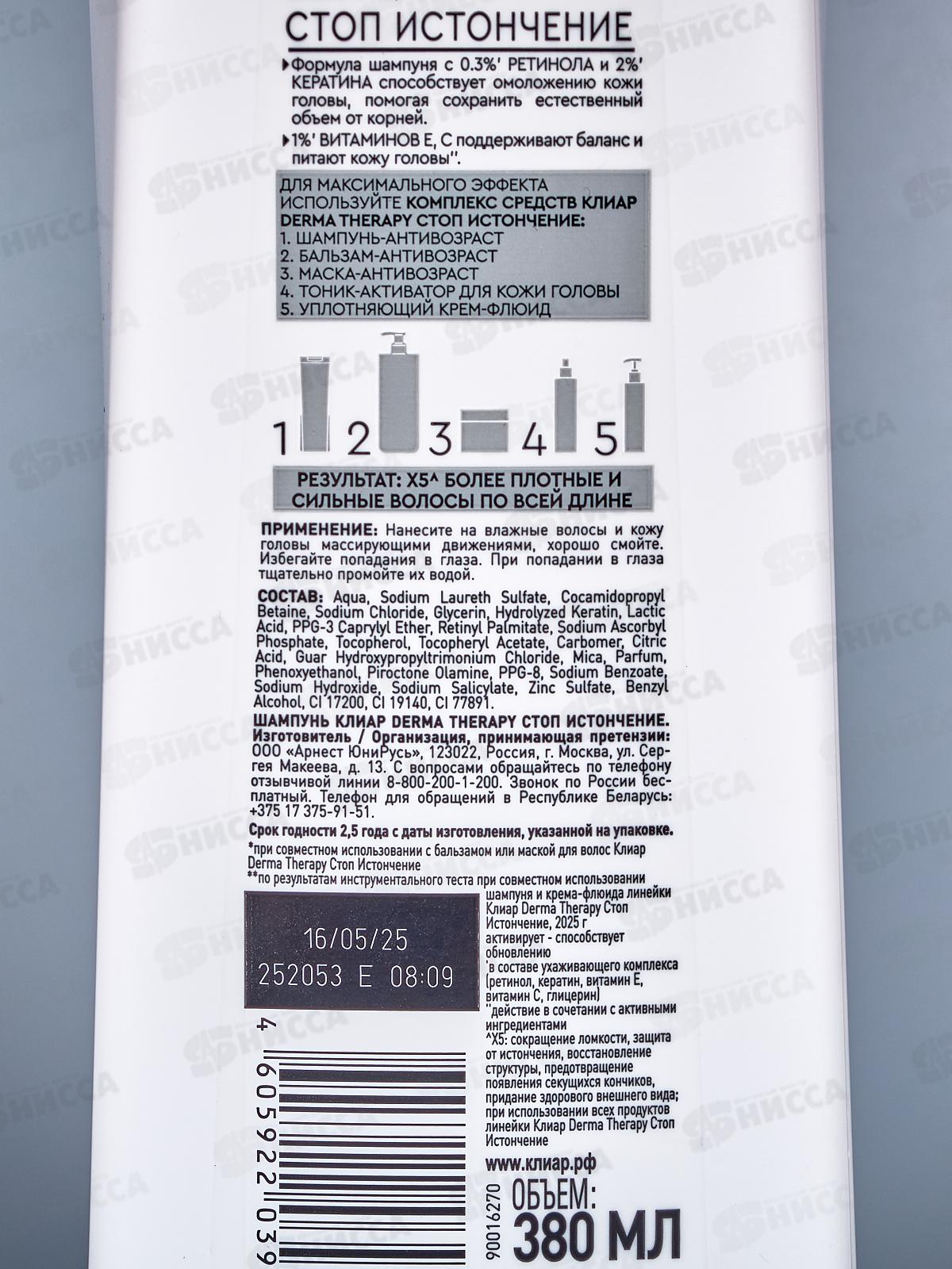 Состав: вода, лауретсульфат натрия, кокамидопропилбетаин, хлорид натрия, глицерин, гидролизованный кератин, молочная кислота, каприлиловый эфир ППГ-3, ретинилпальмитат, аскорбилфосфат натрия, токоферол, токоферилацетат, карбомер, лимонная кислота, гуар гидроксипропилтримония хлорид, слюда, парфюмерная композиция, феноксиэтанол, пироктон оламин, ППГ-8, бензоат натрия, гидроксид натрия, салицилат натрия, сульфат цинка, бензиловый спирт, CI 17200, CI 19140, CI 77891.