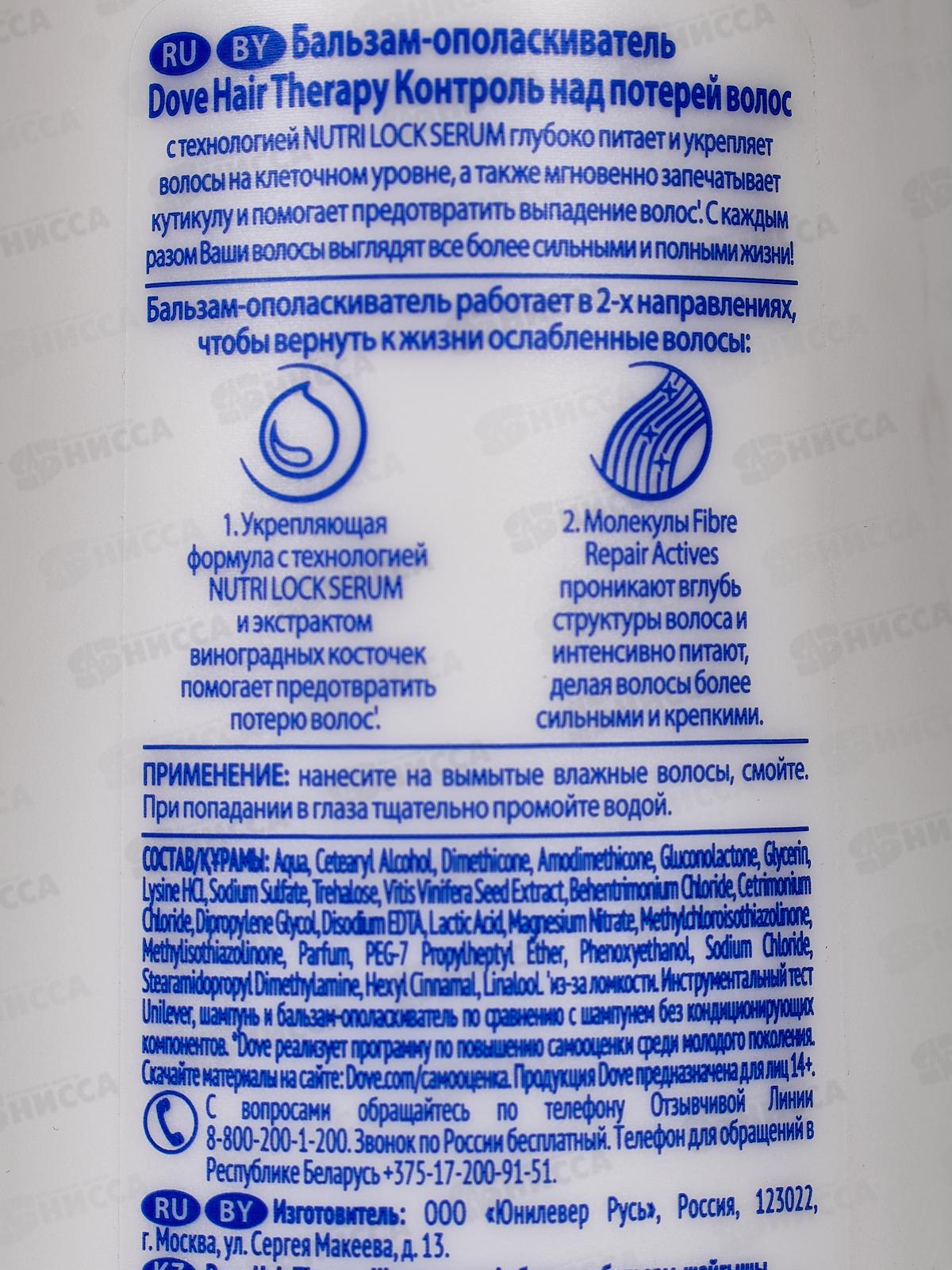 Состав: вода, цетеариловый спирт, диметикон, амодиметикон, глюконолактон, глицерин, лизин HCl, сульфат натрия, трегалоза, экстракт семян винограда культурного, бегентримония хлорид, стеарамидопропилдиметиламин, цетримония хлорид, дипропиленгликоль, динатриевая соль ЭДТА, молочная кислота, нитрат магния, метилхлоризотиазолинон, метилизотиазолинон, парфюмерная композиция, ПЭГ-7 пропилгептиловый эфир, феноксиэтанол, хлорид натрия, гексилциннамаль, линалоол.
