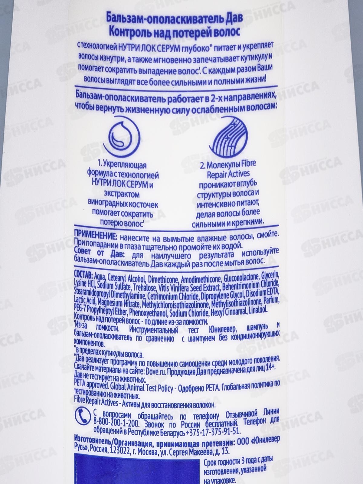 ДАВ бальзам ополаскиватель RT Контроль над потерей волос 200мл *12