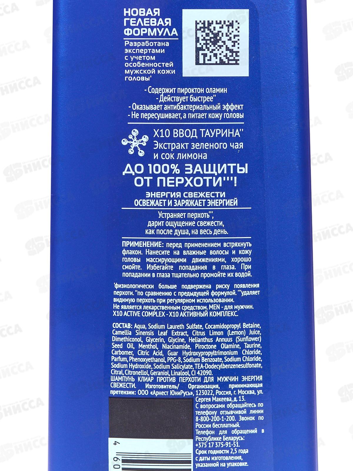 CLEAR шампунь 400мл Энергия свежести для мужчин *12