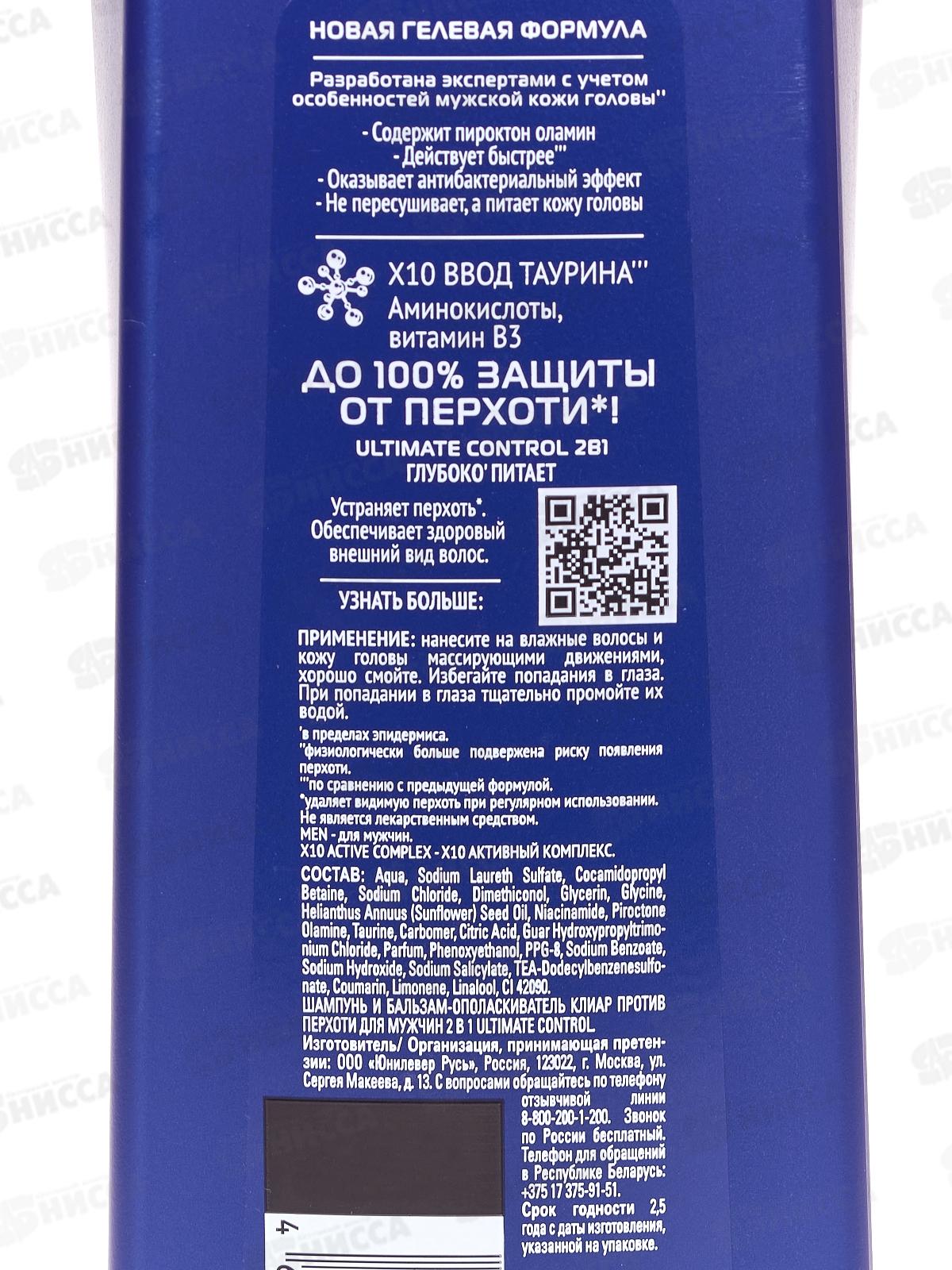 CLEAR шампунь 400мл Ultimate Control для мужчин *12