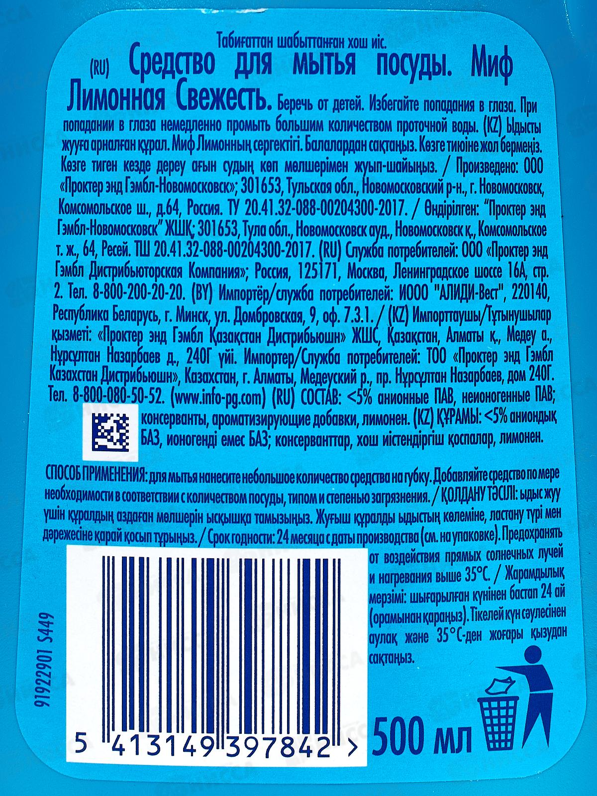 Состав: 5-15% Анионные ПАВ, 5% Неионогенные ПАВ, Консерванты, Ароматизирующие Добавки, Лимонен