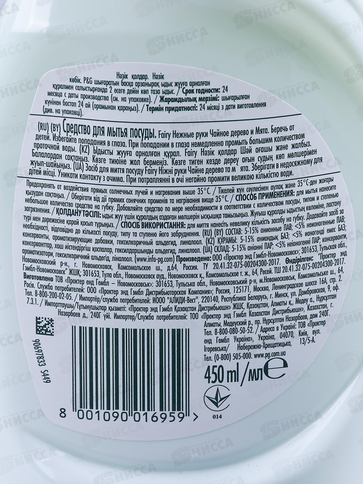 ФЭЙРИ 0,45л жидкость для посуды Нежные руки Чайное дерево и мята *12