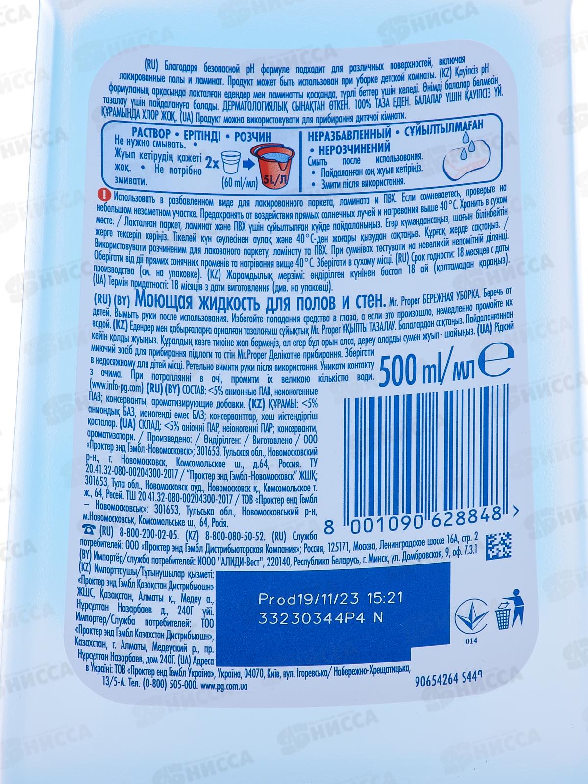 Средство для мытья полов Mr. Proper "Бережная уборка" обеспечивает 100% очищение. Абсолютно чистый дом одобрен Федерацией педиатров стран СНГ как более безопасный для детей и домашних животных. Подходит для всех типов полов и поверхностей на кухне, в ванной и в других помещениях в доме. Жидкость также эффективно очищает такие поверхности, как столы, стены, пол, духовка, раковина, холодильник, мусорное ведро, ванна и кран, унитаз и детский стульчик.