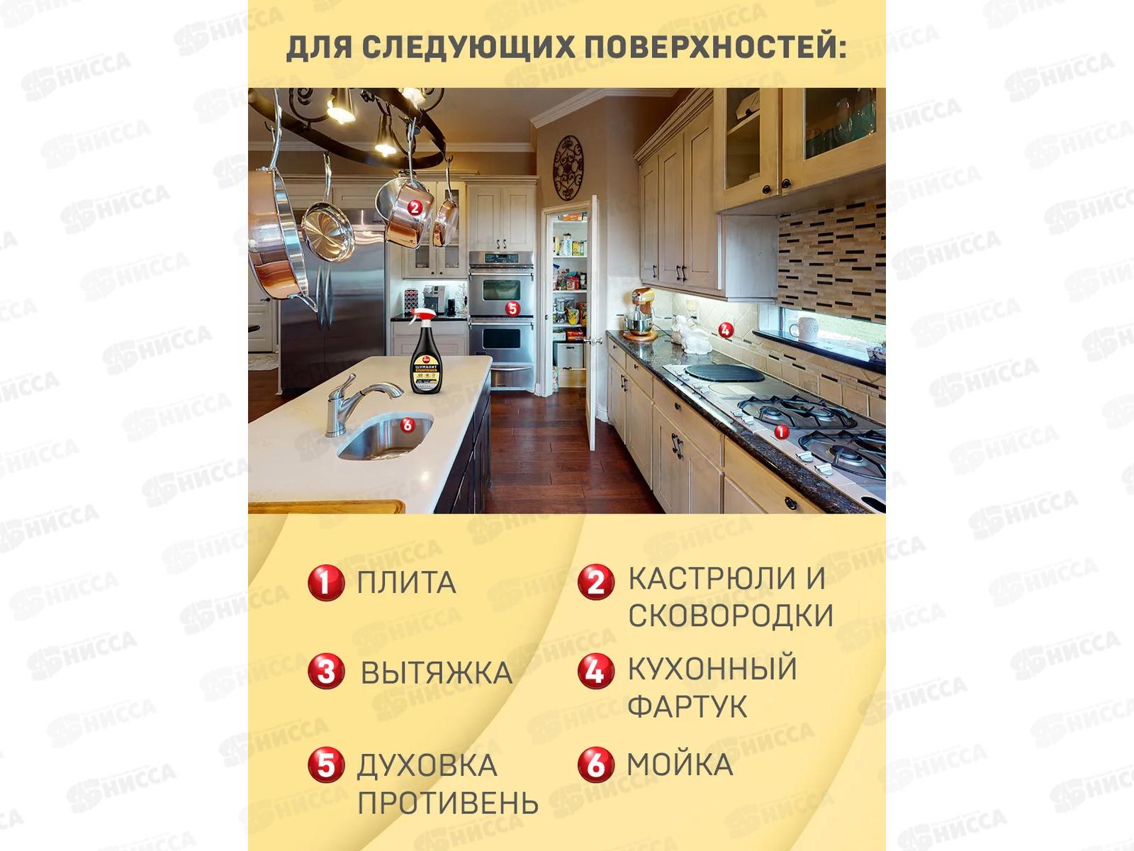 Средство для мгновенного удаления въевшихся, стойких и пригоревших жировых загрязнений с плит, духовых шкафов, вытяжек, пароуловителей, грилей, кастрюль, сковородок и других поверхностей.