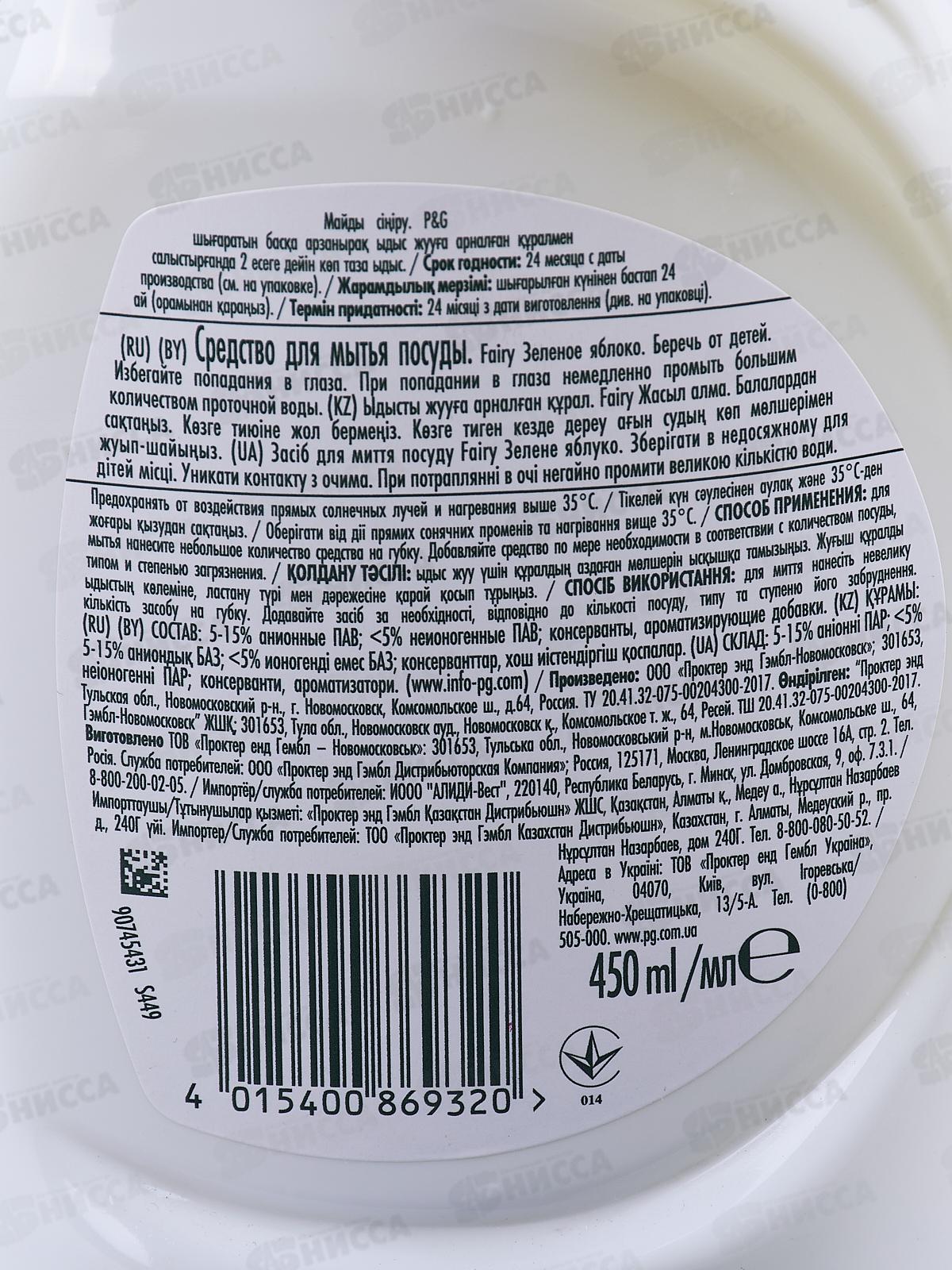 ФЭЙРИ 0,45л жидкость для посуды Яблоко *21
