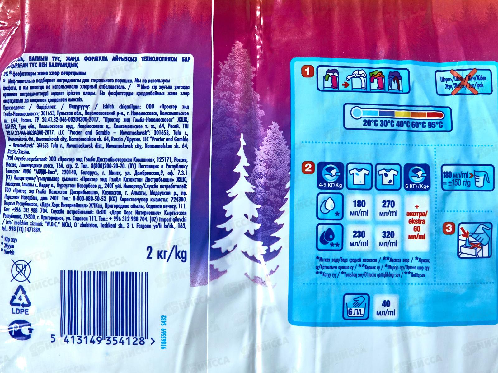 Миф автомат 2кг стиральный порошок Свежий цвет *8