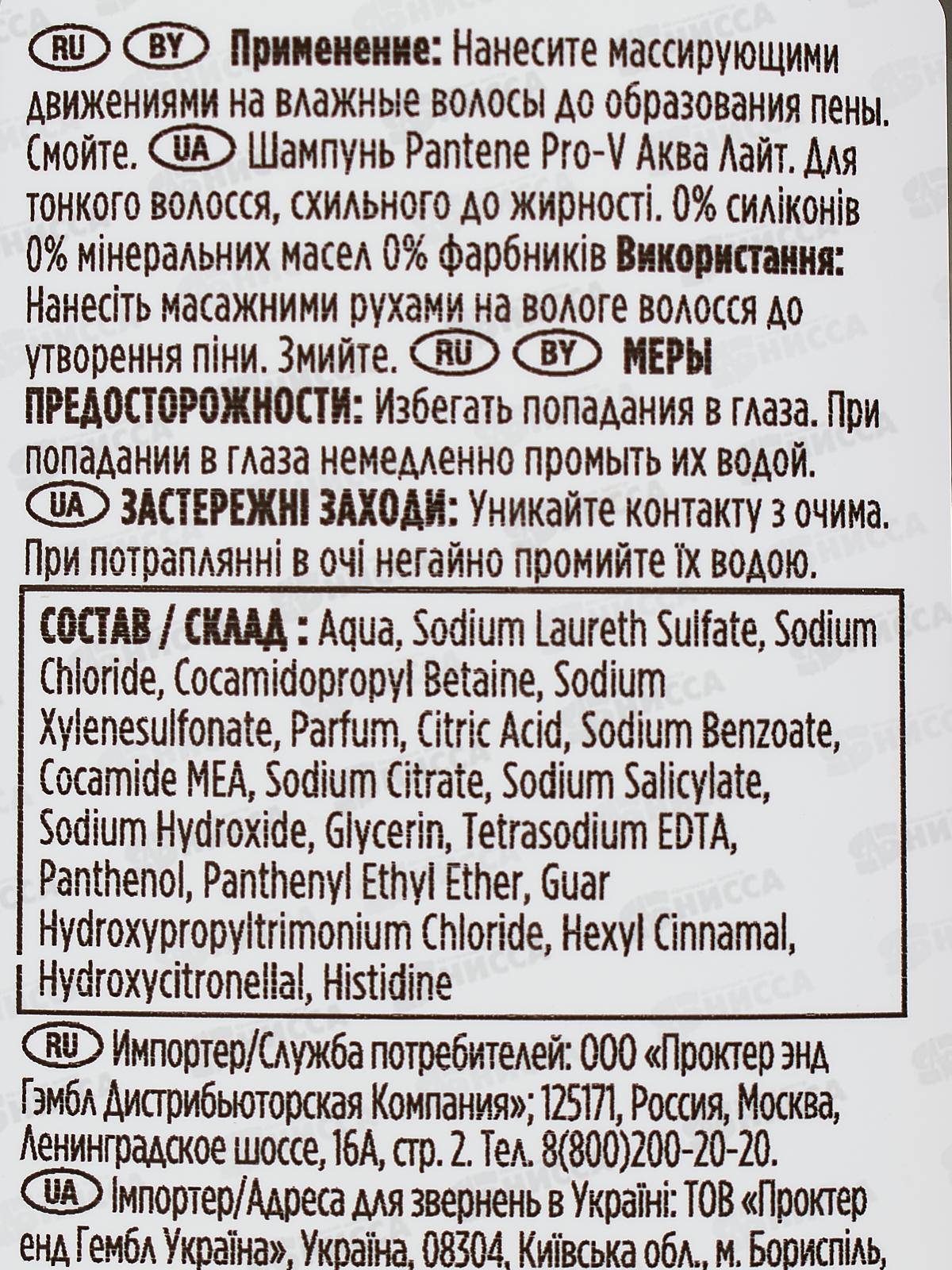 ПАНТИН шампунь 250мл Aqua Light для тонких и склонных к жирности волос *6