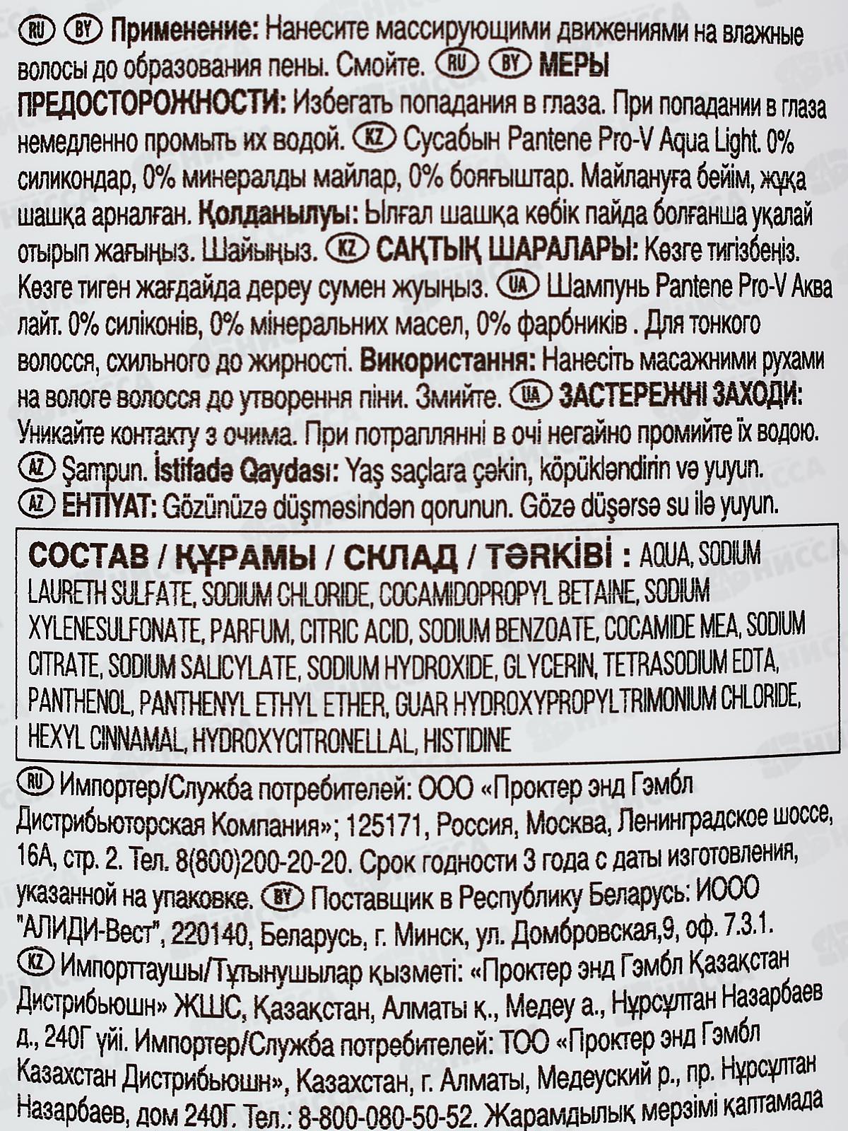 ПАНТИН шампунь 400/360мл Aqua Light для тонких и склонных к жирности волос *6